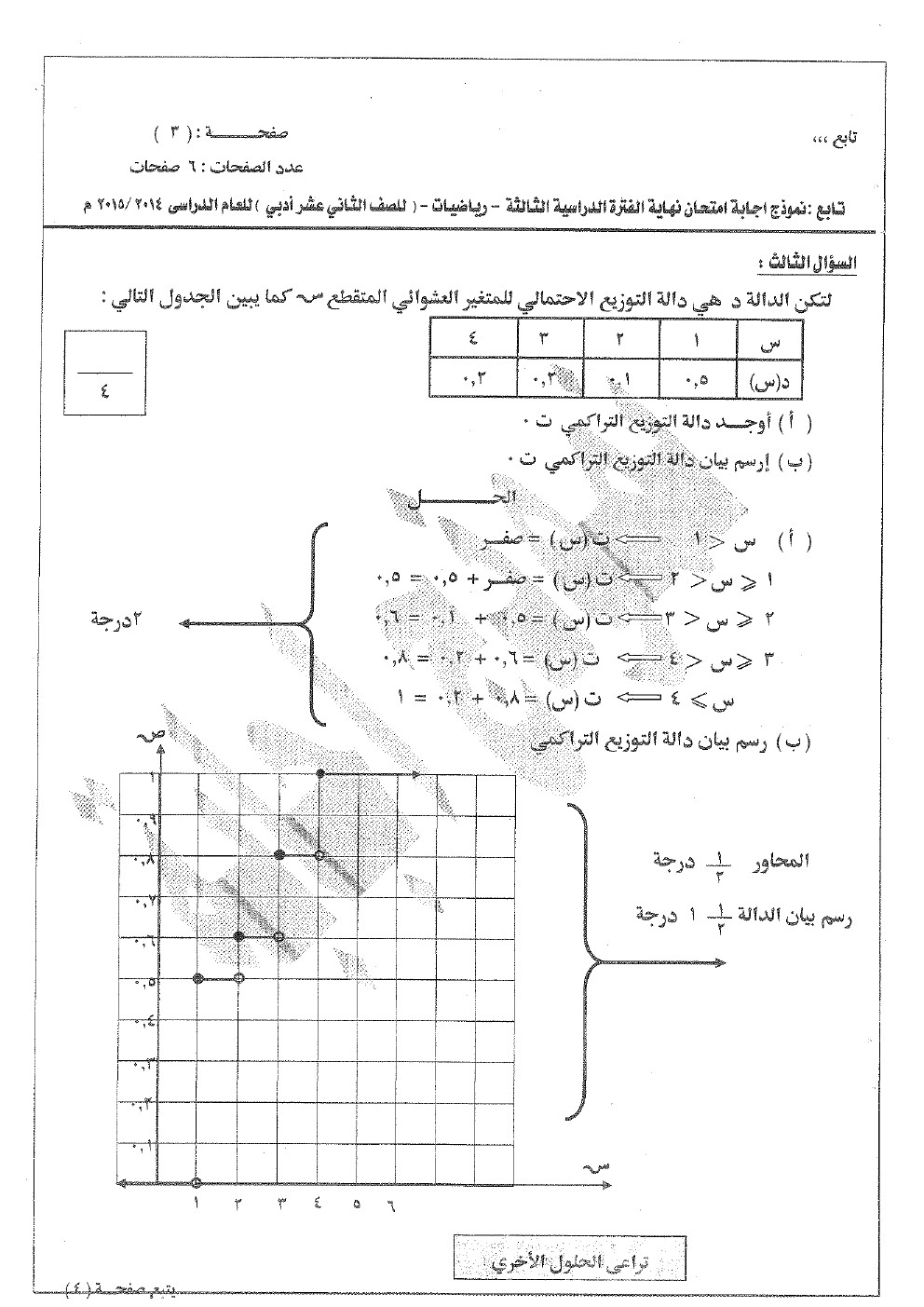 14. إحصاء, الفصل الأول, 2025-2026, إجابة نماذج اختبارت غير محلولة 1