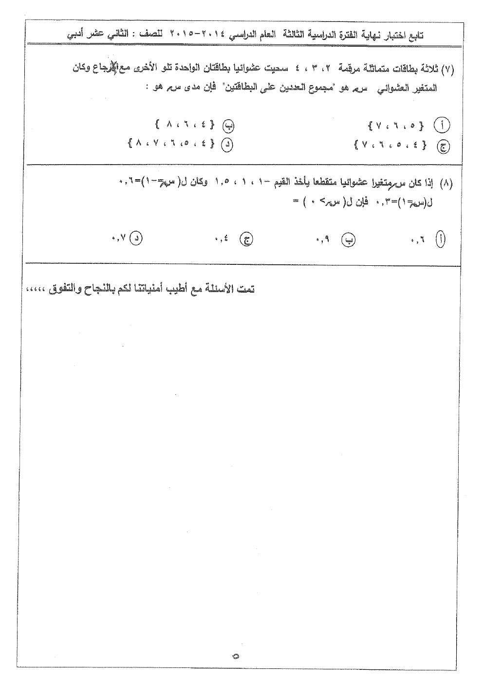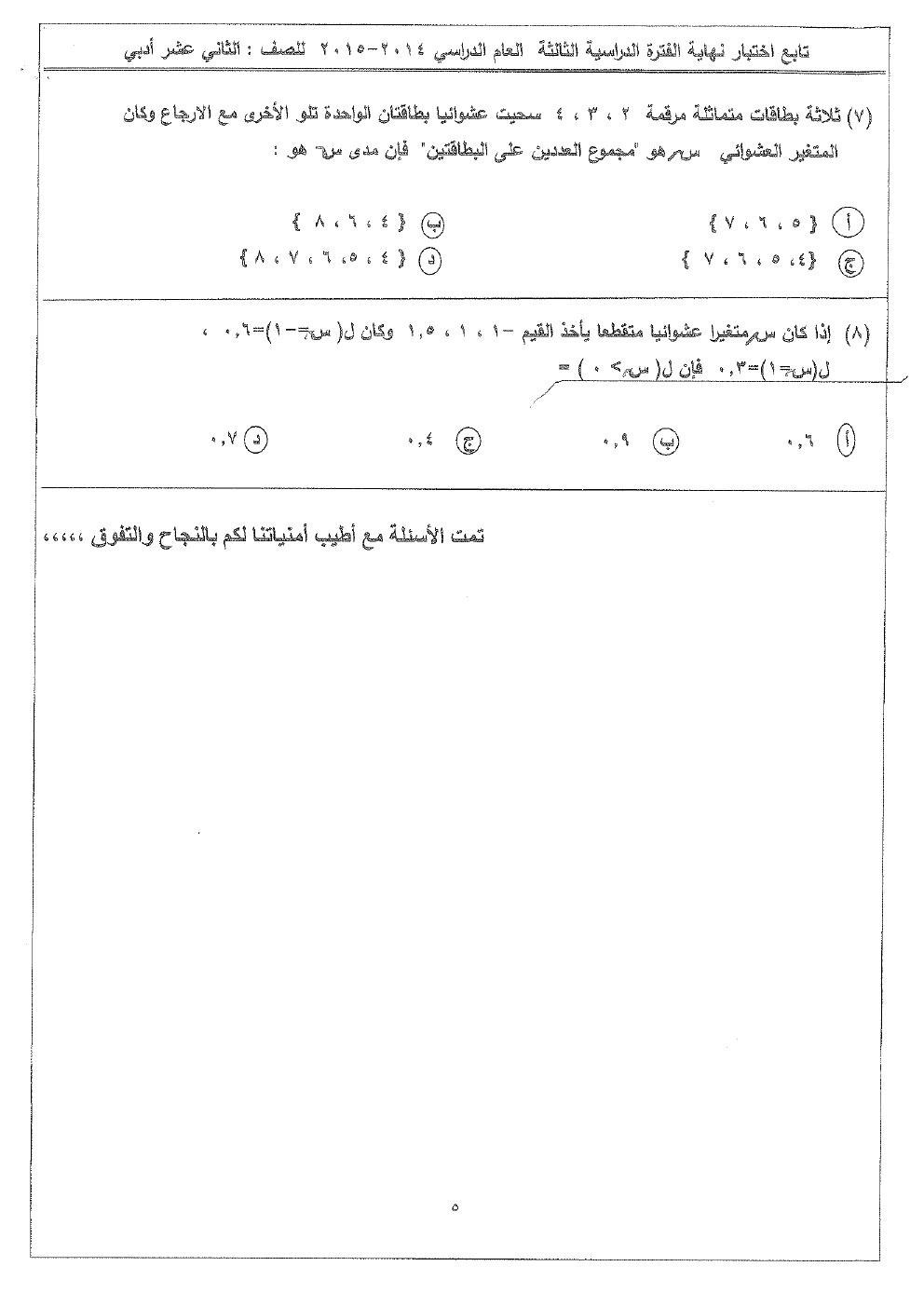 7. موضوعي الاختبارات السابقة (آخر كلام)