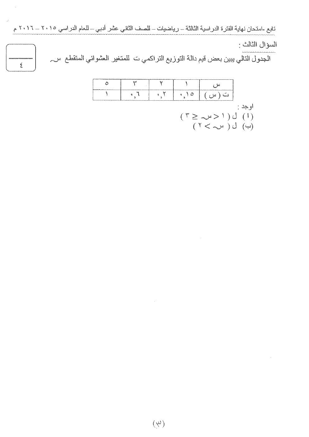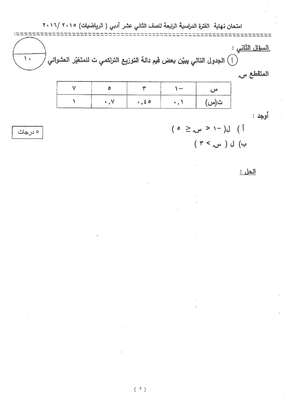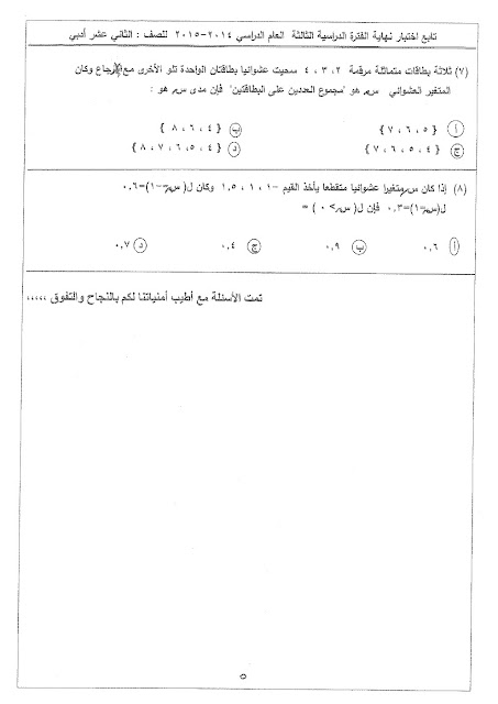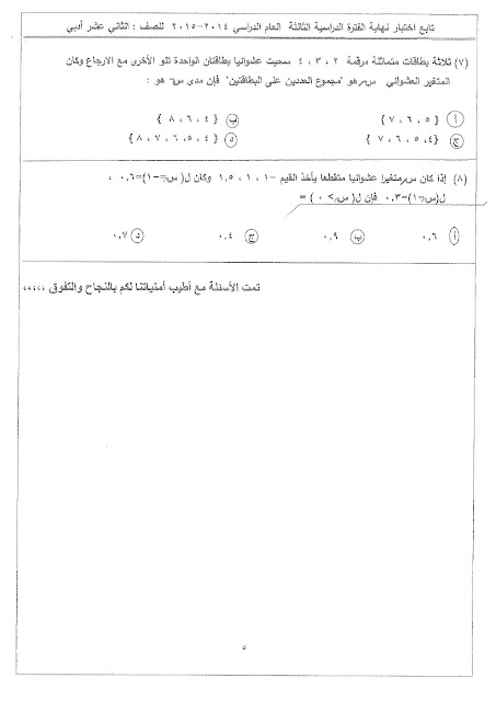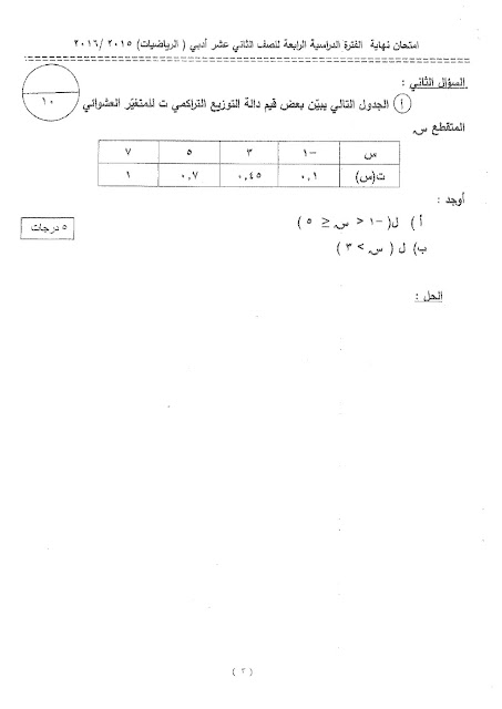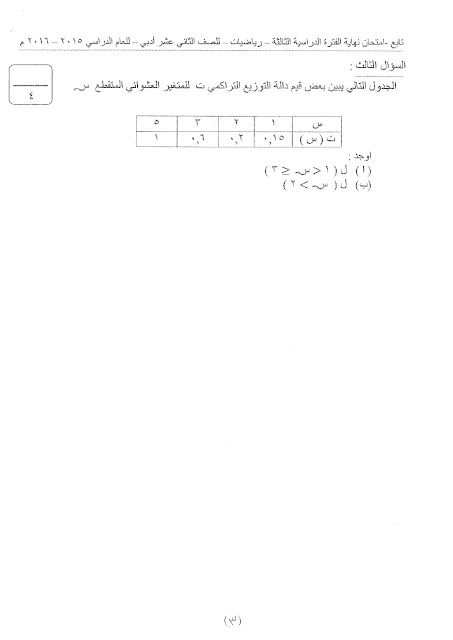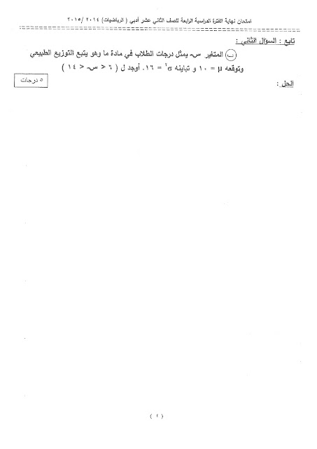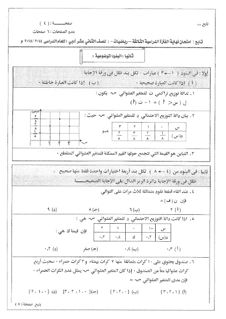 أحدث ملفات الصف الثاني عشر الأدبي, رياضيات, الفصل الثاني
