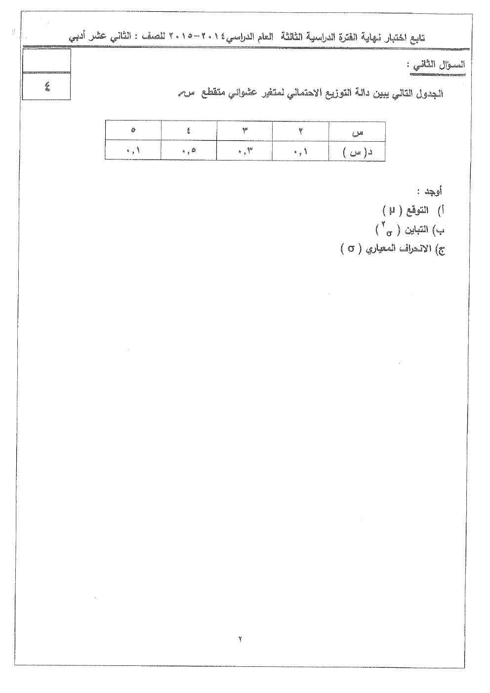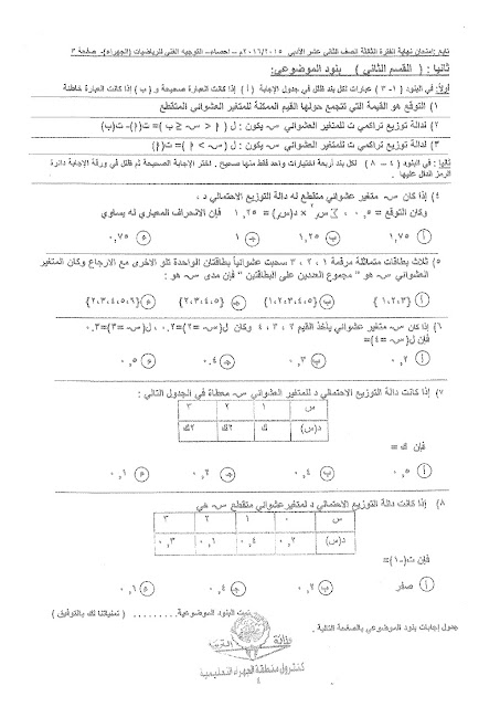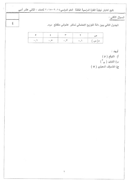 نماذج اختبارات واجاباتها النموذجية في مادة الاحصاء للصف الثاني عشر الادبي للفصل الدراسي الثاني في 101 ورقة