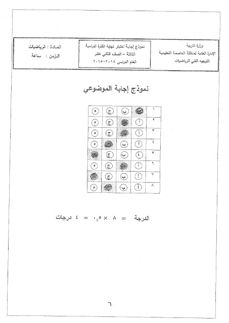 1. نموذج إجابة الاختبار النهائي الرسمي المعتمد من التوجيه الفني العام