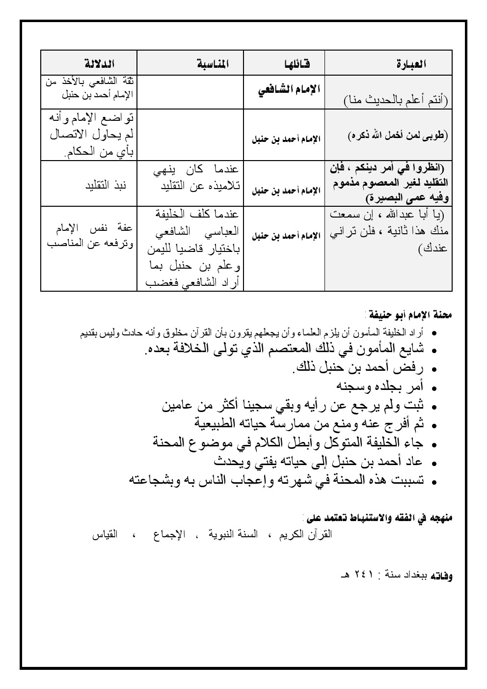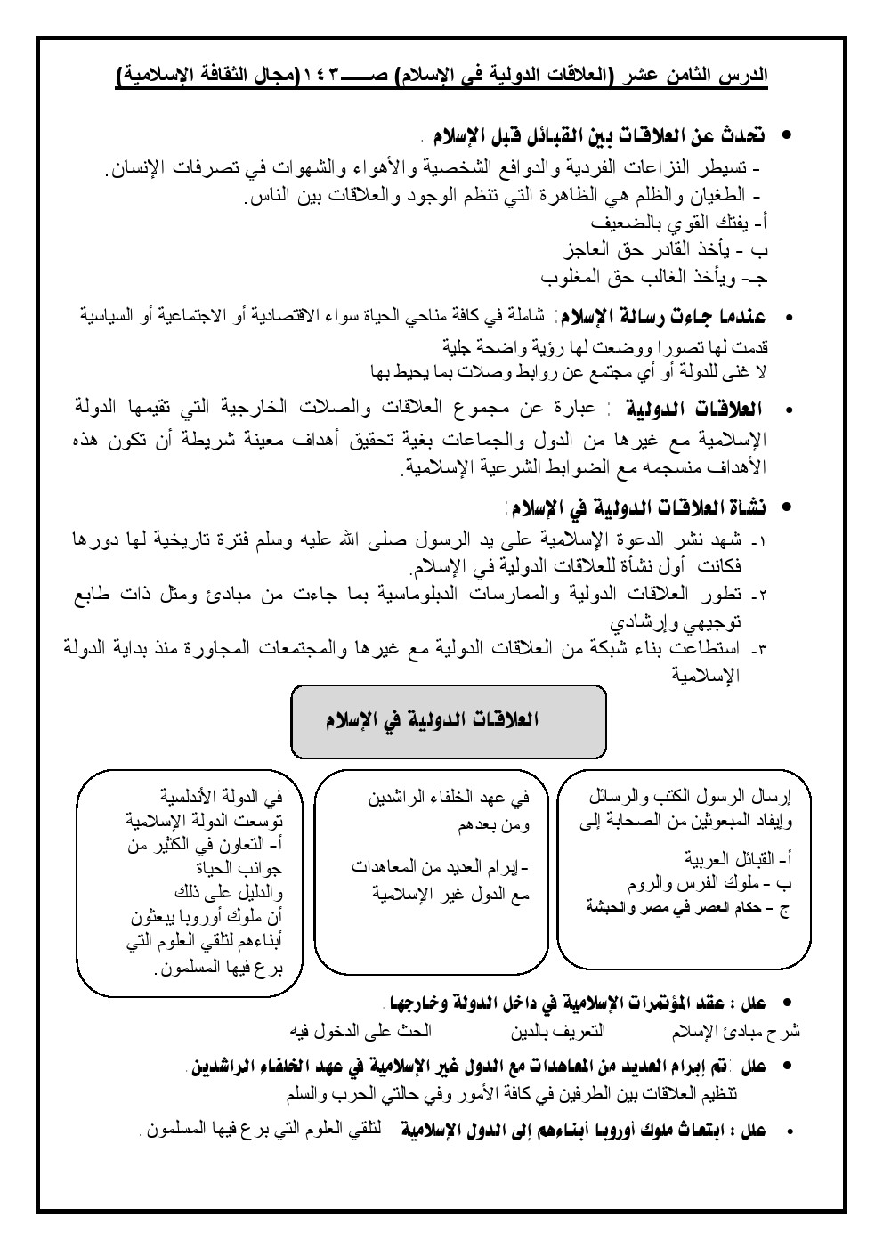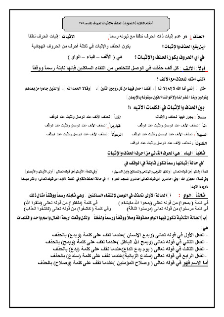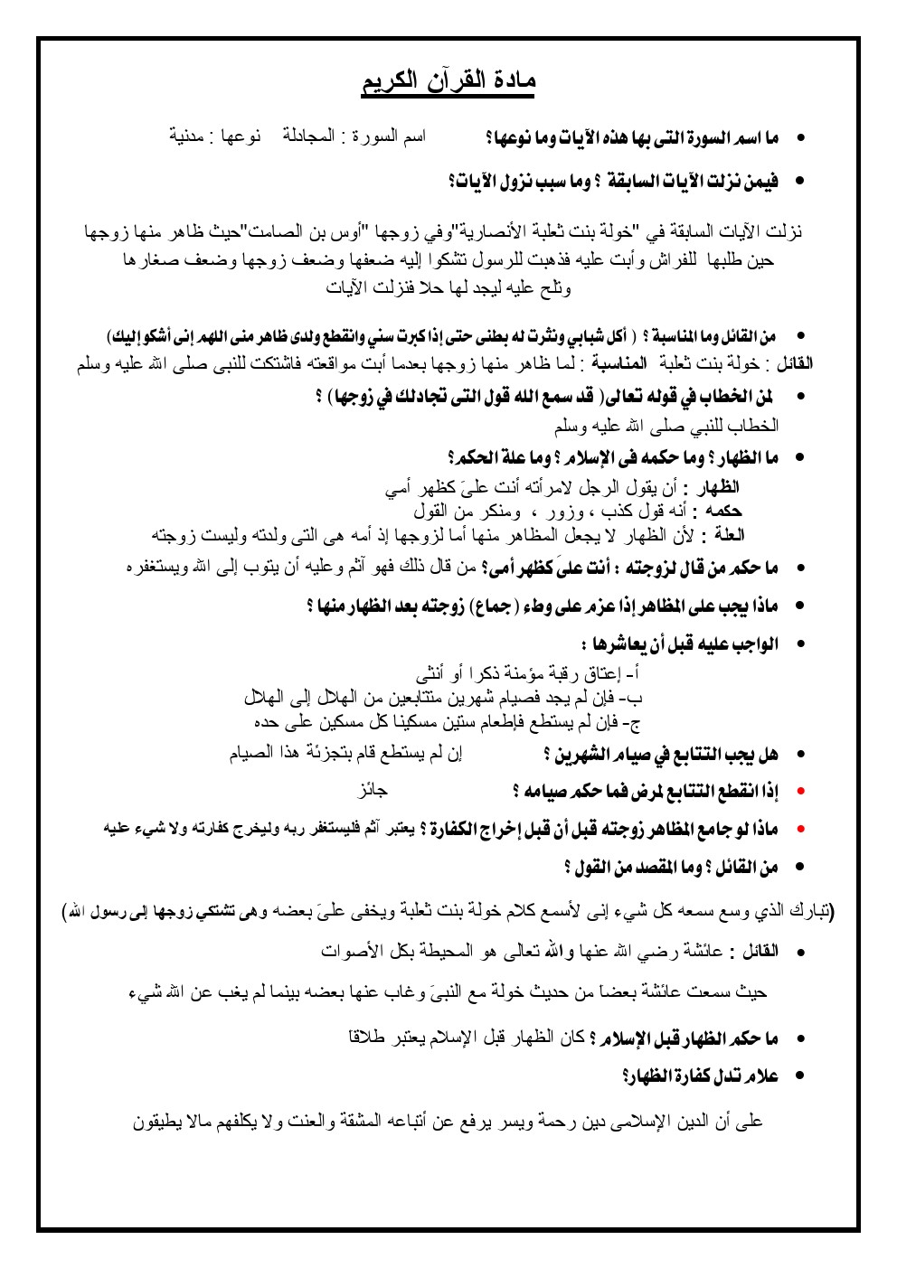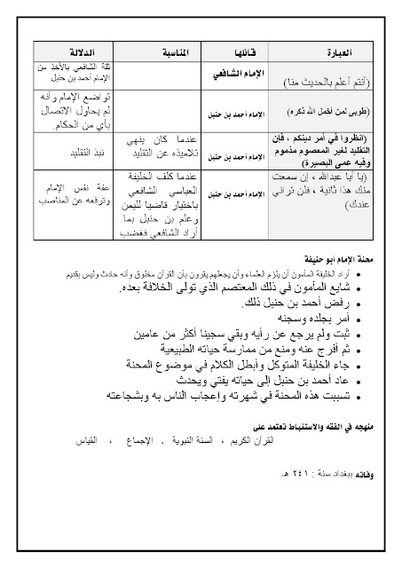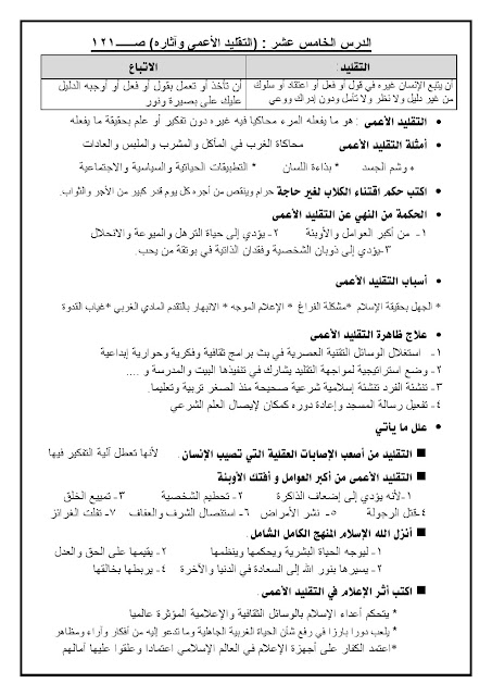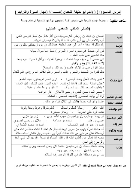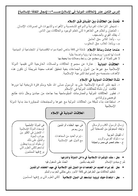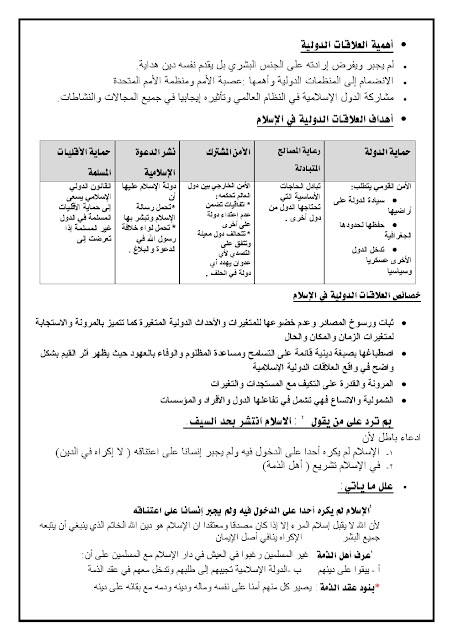 مذكرة مهمة في مادة التربية الاسلامية - إعداد: مدرسة النجاة الثانوية | ||