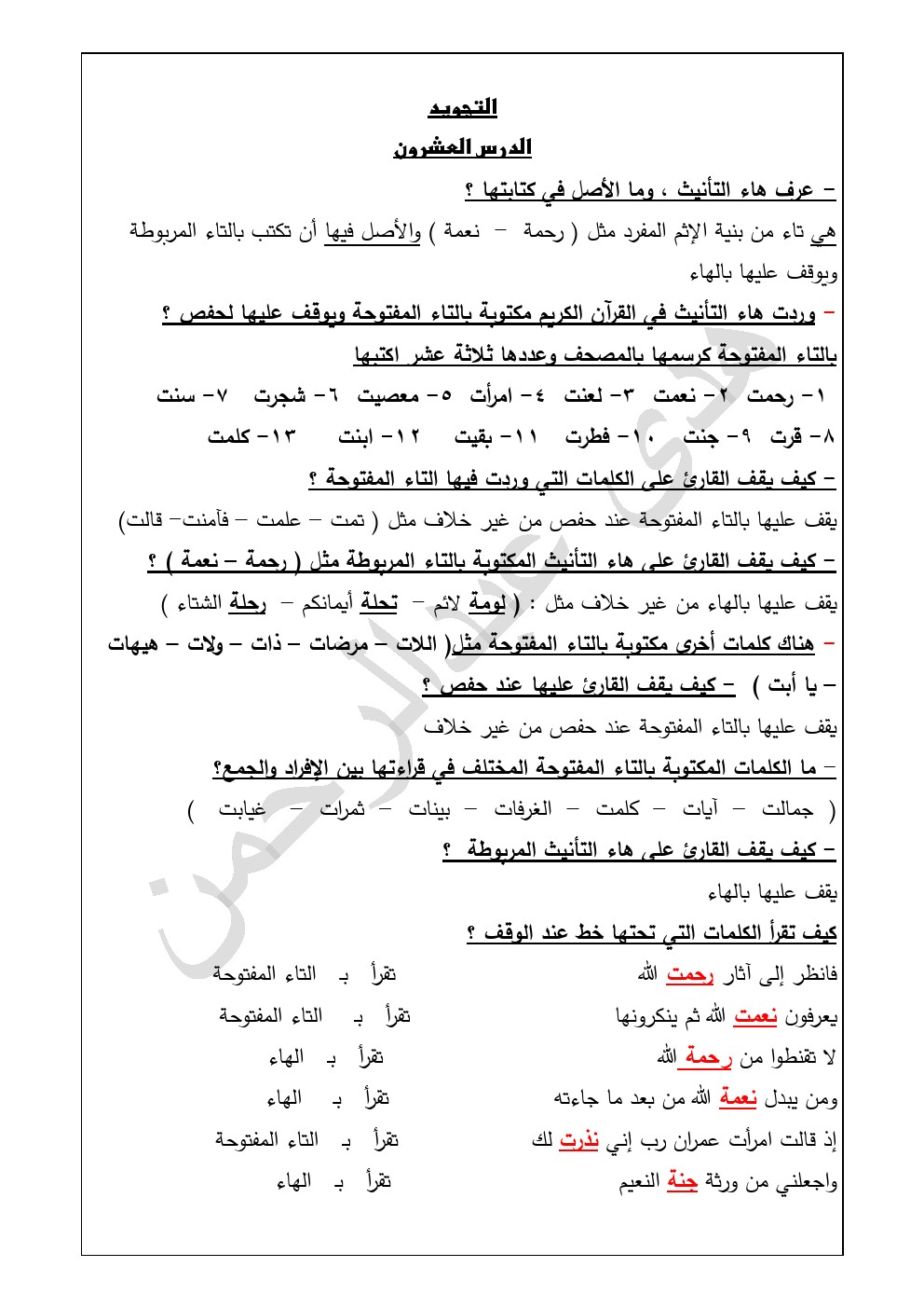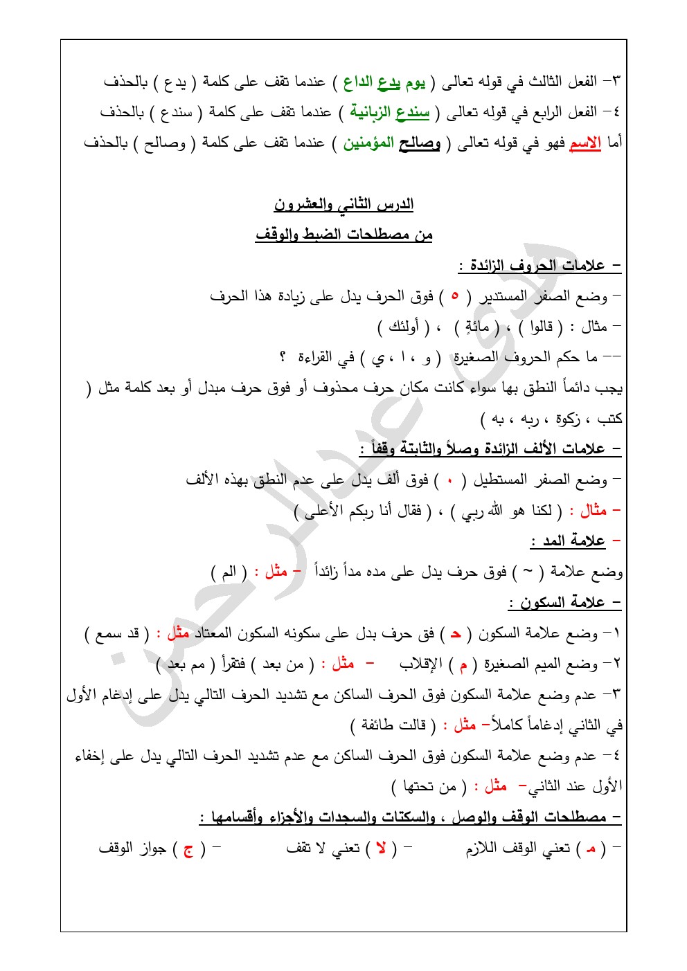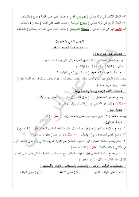 7. ملخص مهم لدروس منهج القرآن الكريم