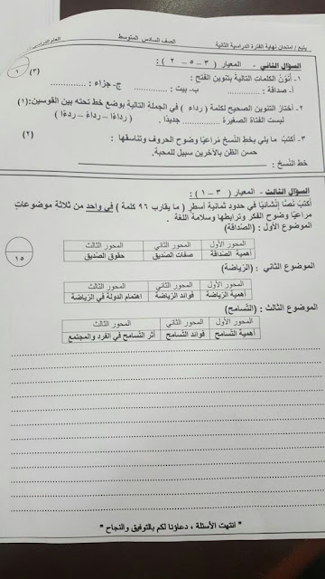 أحدث ملفات الصف السادس, الامتحانات, الفصل الثاني