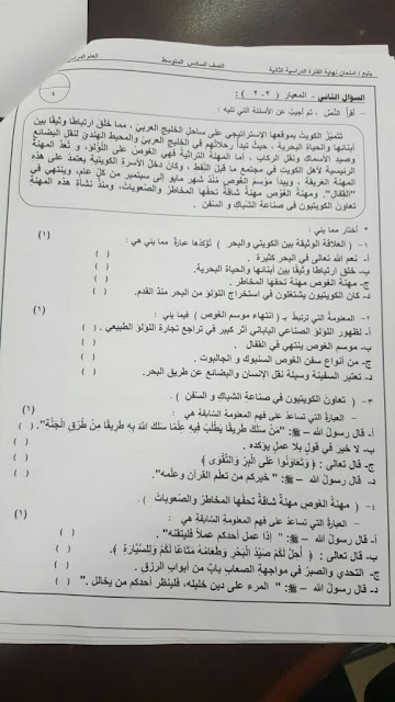 أنت هنا: موقع المناهجالمناهج الكويتية الصف السادس لغة عربية الفصل الثاني الامتحان النهائي