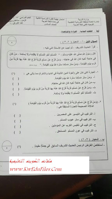 نموذج اختبار نهاية الفترة الدراسية الثانية 2017_2018_في مادة اللغة العربية - إعداد: منطقة الفروانية التعليمية