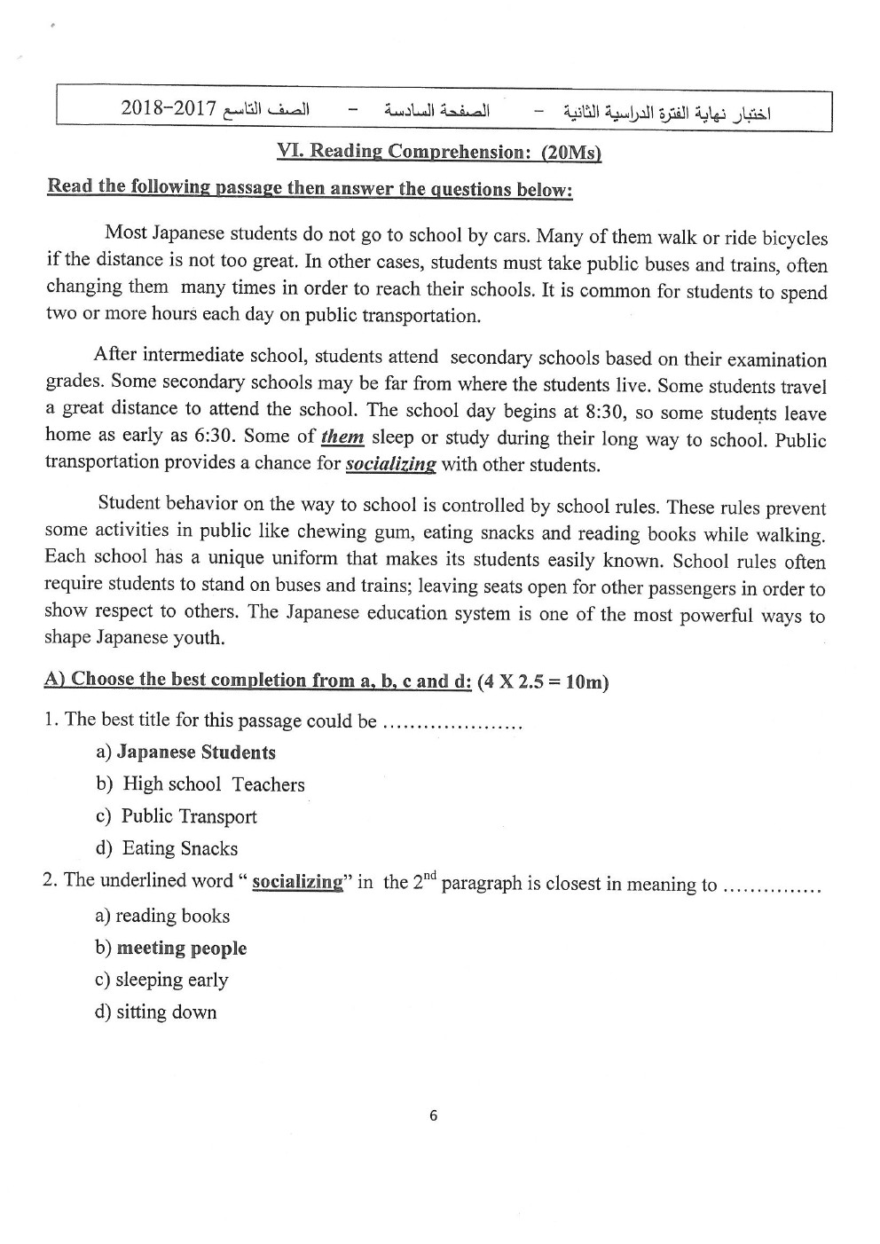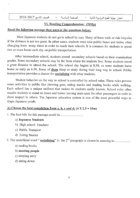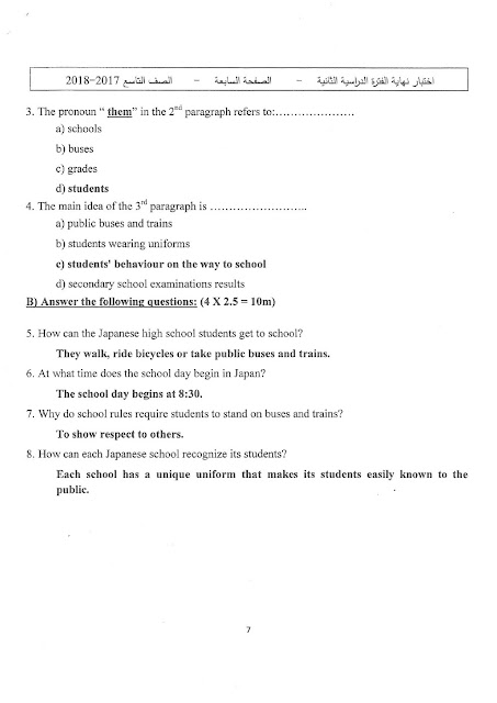 معلومات الملف: إليكم نموذج اجابة مادة اللغة الانجليزية للصف التاسع - الفترة الثانية من العام الدراسي 2017-2018