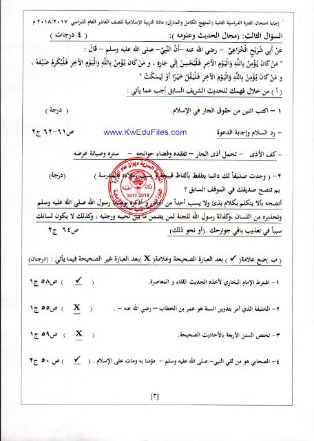 معلومات الملف: اجابة اسلامية عاشر الفترة الثانية 2018 منهج كامل ومنازل | ||
