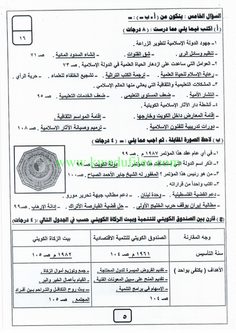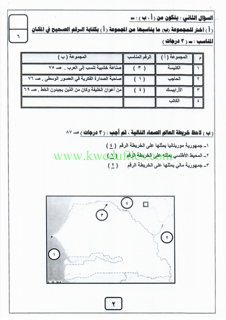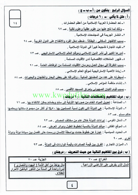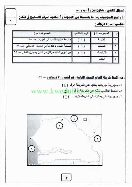 نموذج اجابة اختبار في مادة الاجتماعيات لنهاية الفترة الدراسية الثانية - إعداد: منطقة الفروانية التعليمية | ||