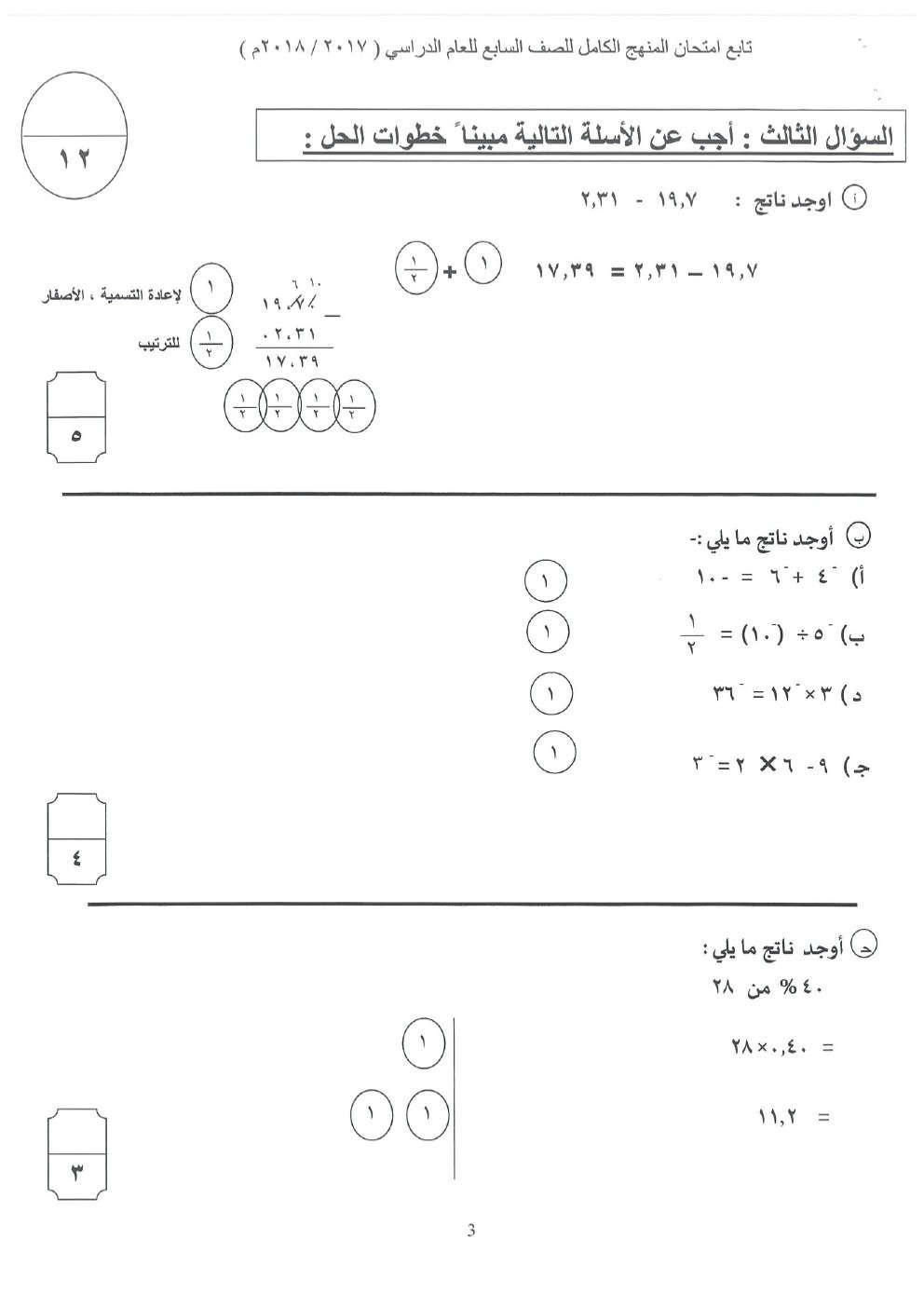 اجابة سابع رياضيات احمدي منهج كامل - إعداد: منطقة الأحمدي التعليمية | ||