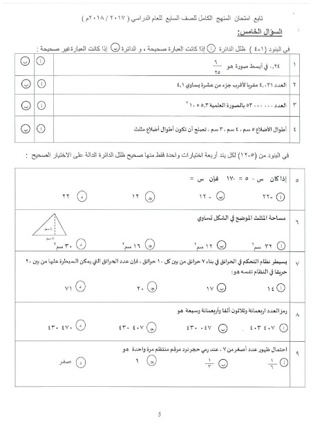 معلومات الملف: اجابة سابع رياضيات احمدي- منهج كامل | ||