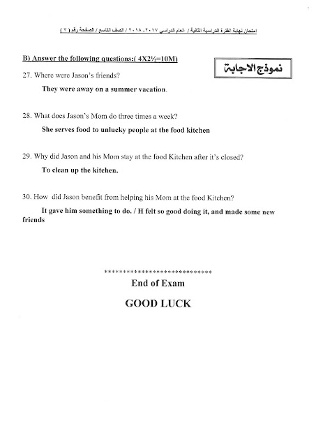 2. إجابة الاختبار النهائي لمنطقة الجهراء التعليمية