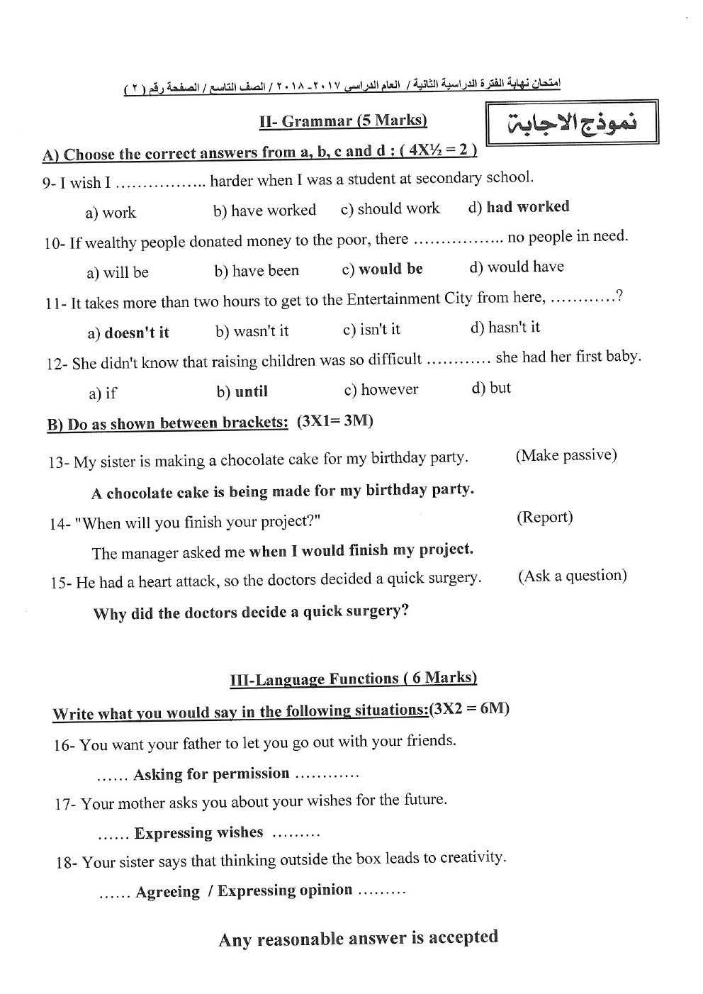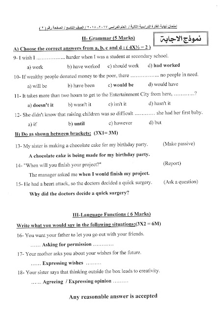 9. تدريبات مراجعة للفاينل مرفقة بالإجابة