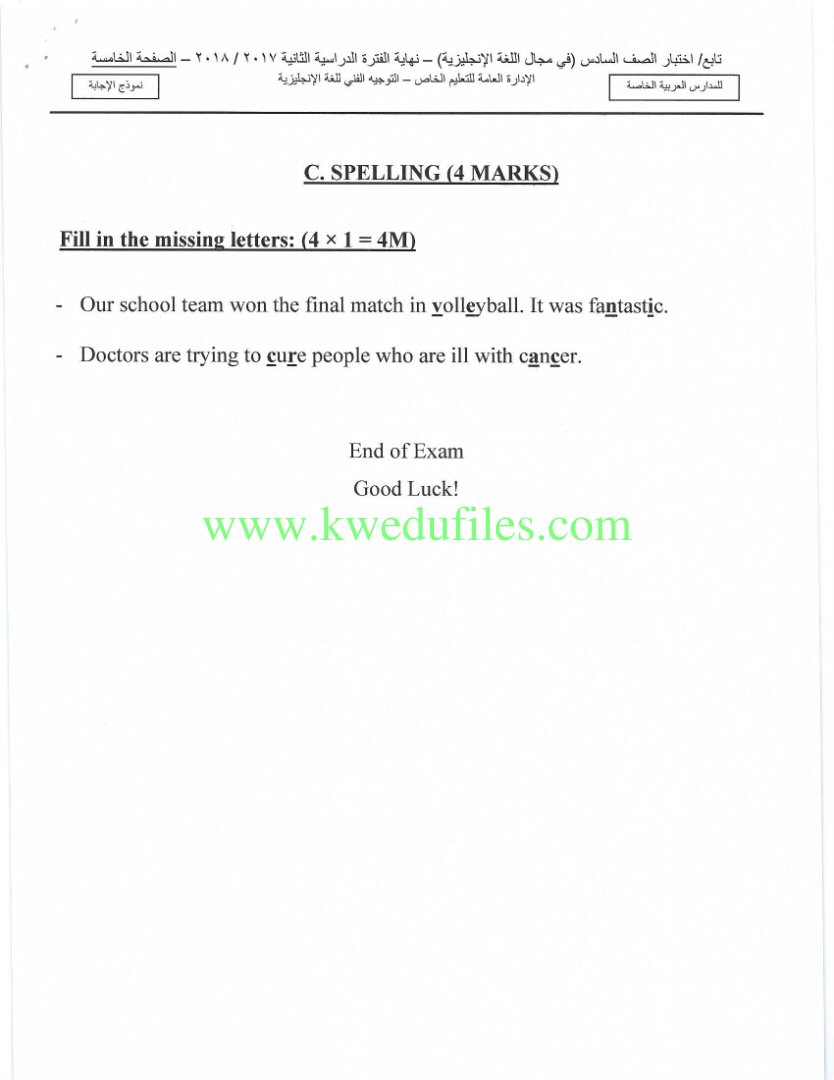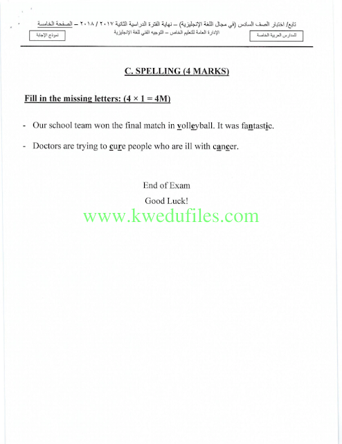 نموذج اجابة اختبار في مادة اللغة الانكليزية لنهاية الفترة الدراسية الثانية لعام 2017_2018 - إعداد: التعليم الخاص | ||