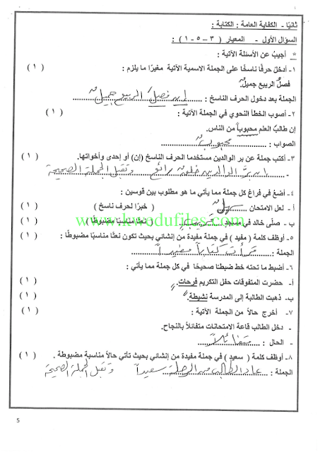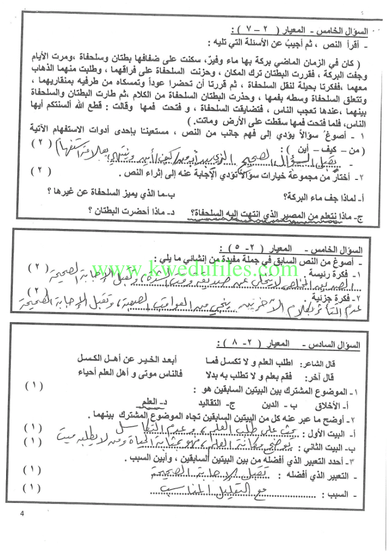 | نموذج اجابة اختبار في مادة اللغة العربية لنهاية الفترة الدراسية الثانية لعام 2017_2018 - إعداد: منطقة العاصمة التعليمية | ||