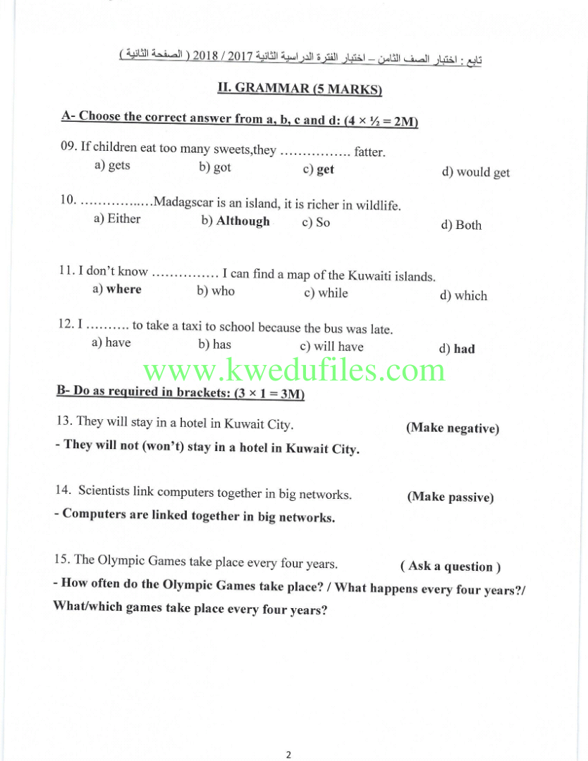 أنت هنا: موقع المناهجالمناهج الكويتية الصف الثامن لغة انجليزية الفصل الثاني حلول