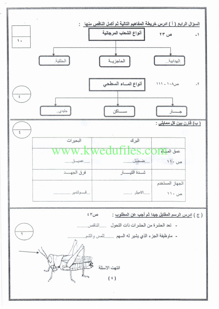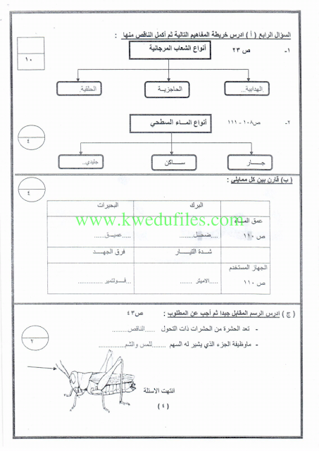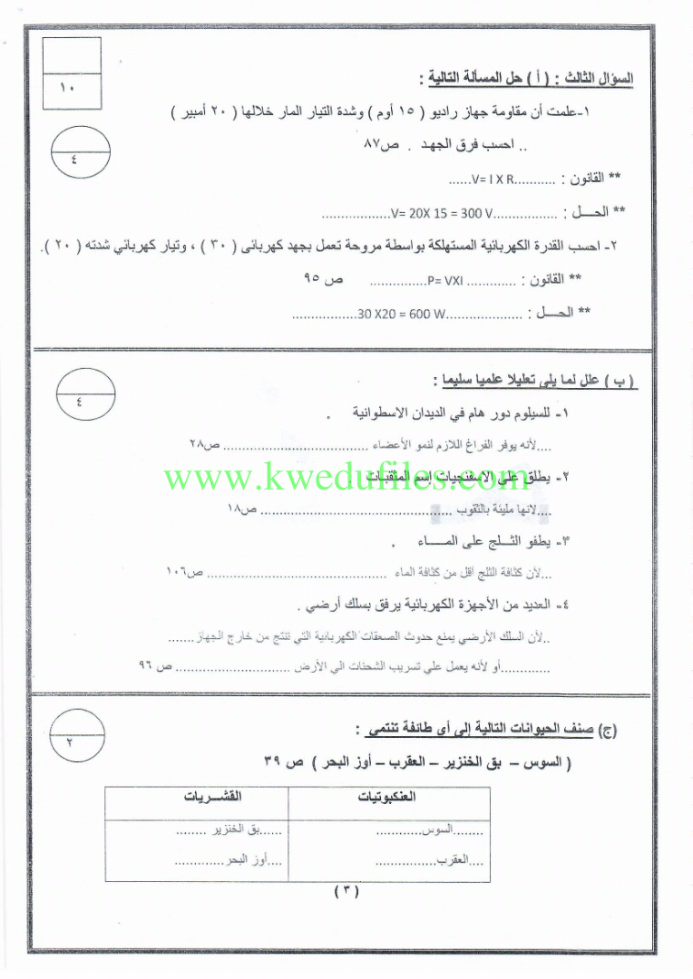 | نموذج اجابة اختبار في مادة العلوم الفروانية - إعداد: منطقة الفروانية التعليمية | ||