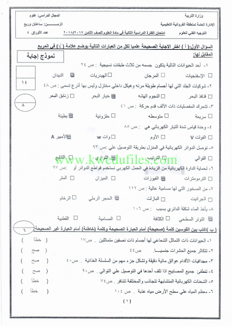 معلومات الملف: 5اوراق في مادة العلوم للصف الثامن للفصل الدراسي الثاني تتضمن نموذج اجابة اختبار لنهاية الفترة الثانية من العام 2017_2018تابع للادارة العامة لمنطقة الفروانية التعليمية | ||