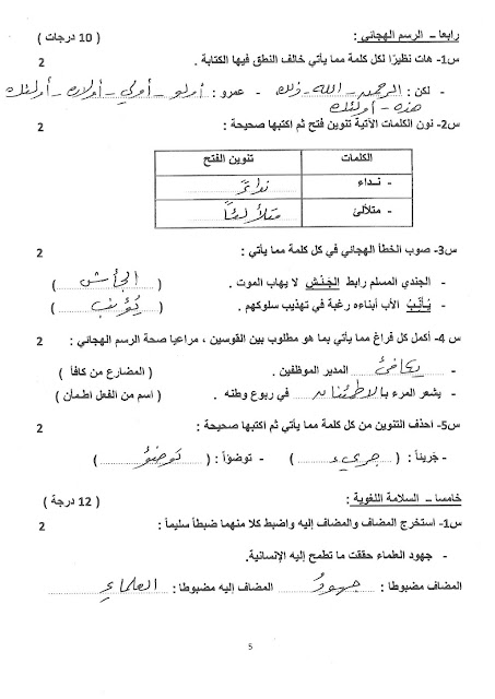 نموذج اجابة اختبار في مادة اللغة العربية عاصمة - إعداد: منطقة العاصمة التعليمية