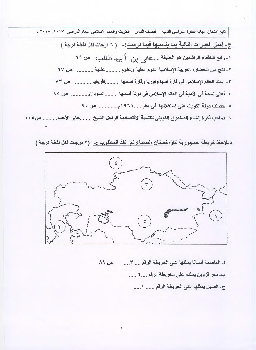 | 10. الصف الثامن, رياضيات, نماذج اختبارات تقويمية قبل 3 أيام | المشاهدات: 295