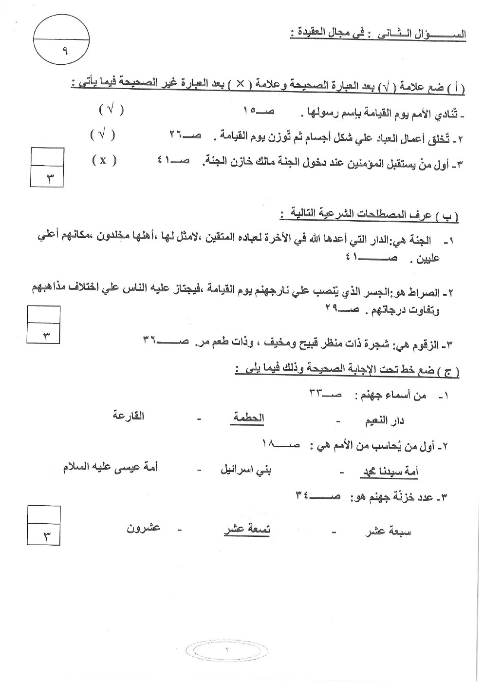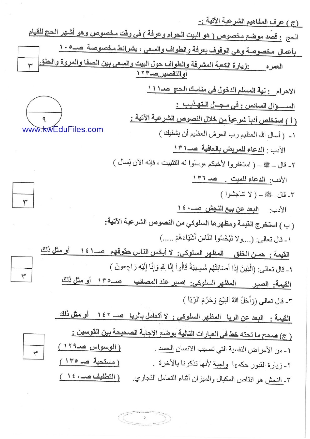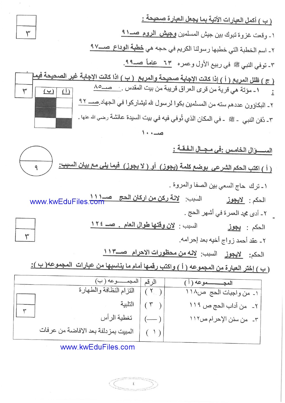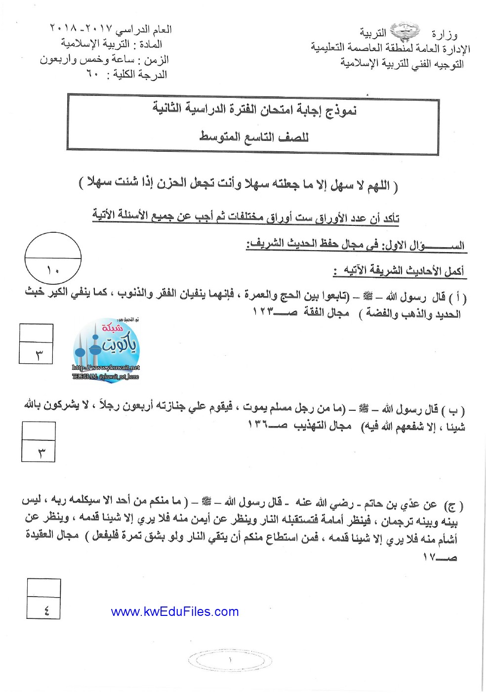 تم إيجاد الملف: اجابة تاسع اسلامية العاصمة 2018