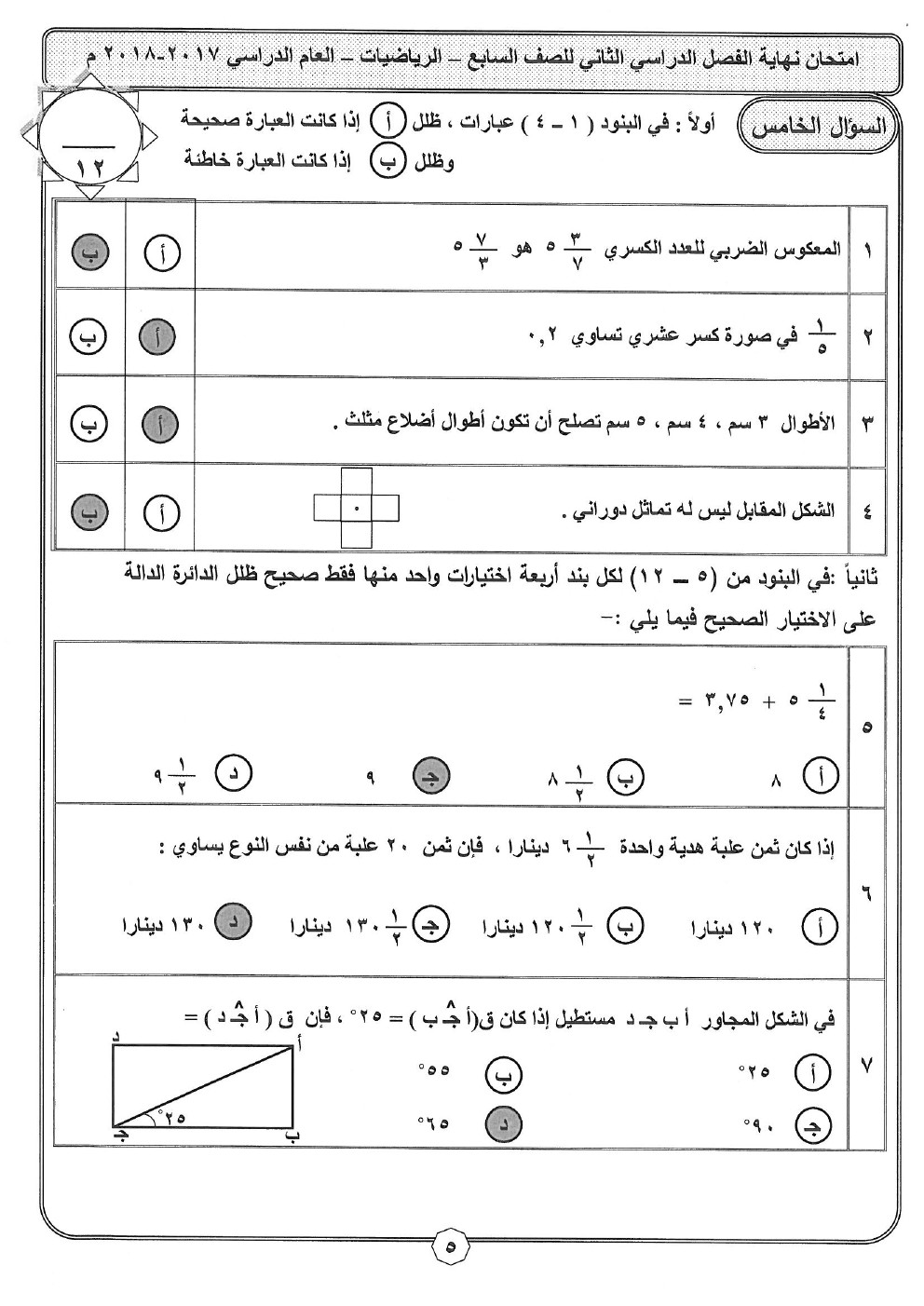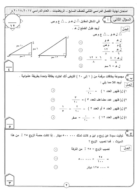 تم إيجاد الملف: اجابة سابع رياضيات حولي 2018