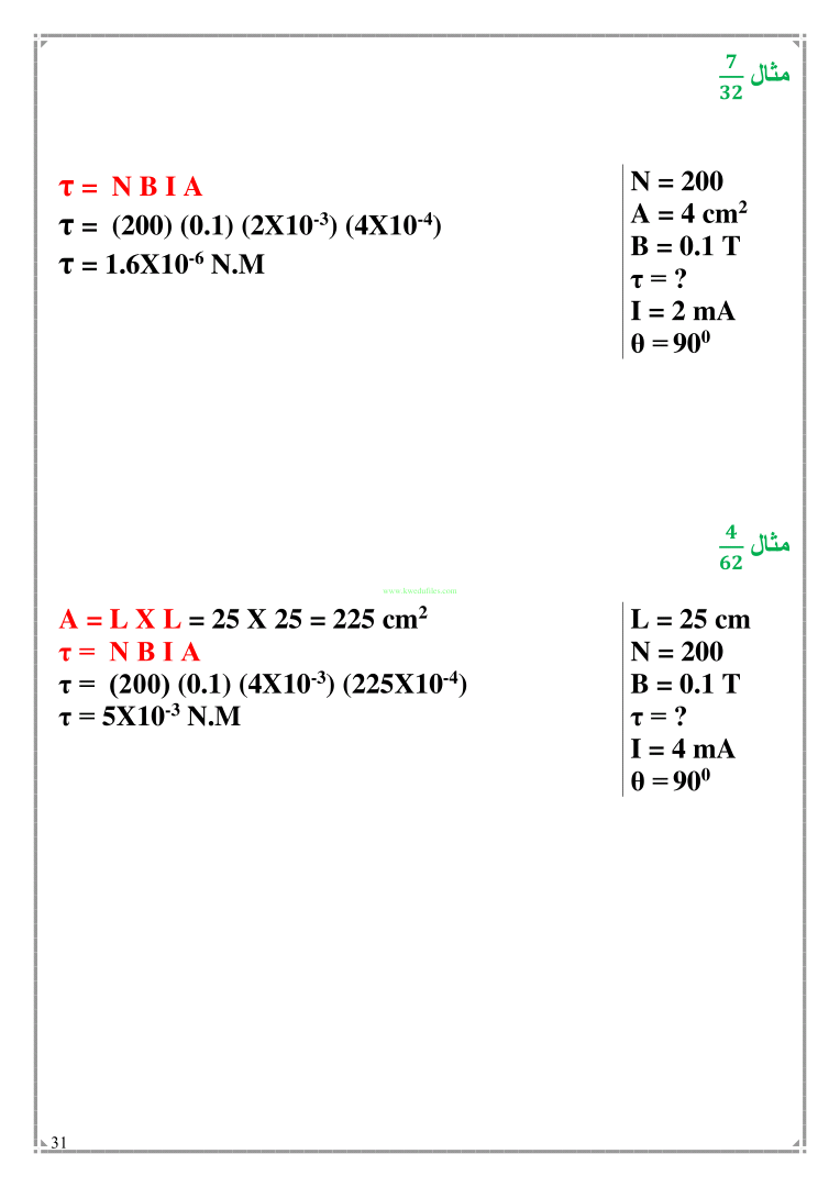 14. فيزياء, الفصل الثاني, 2024-2025, توقعات نهائية للاختبار القصير الثاني (أجوبة)