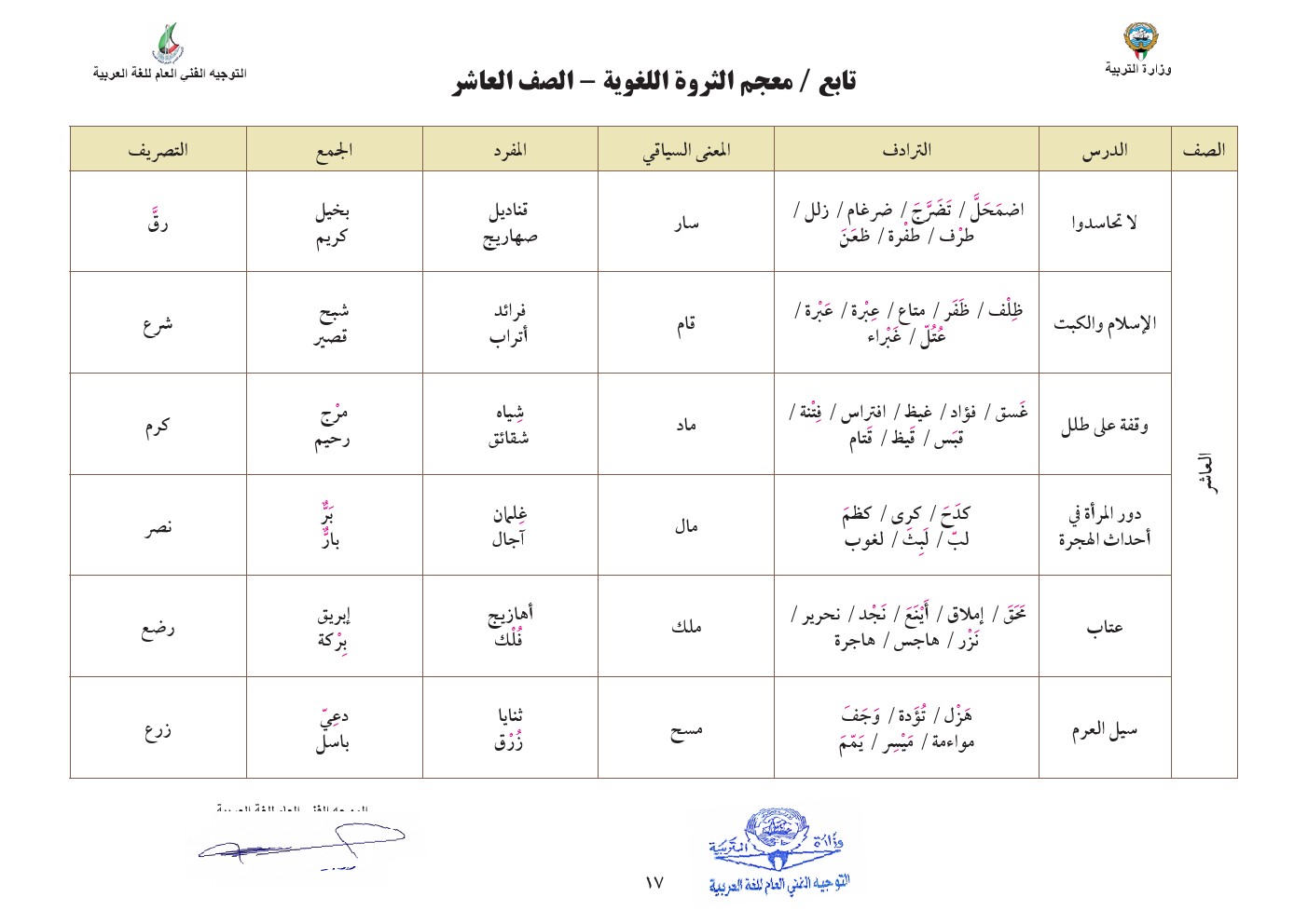 يحتوي الملف على معجم الثروة اللغوية لمادة اللغة العربية عدد اوراق هذا الملف 21 ورقة ويتضمن معجم الثروة اللغوية من الصف الاول حتى الصف الثاني عشر
