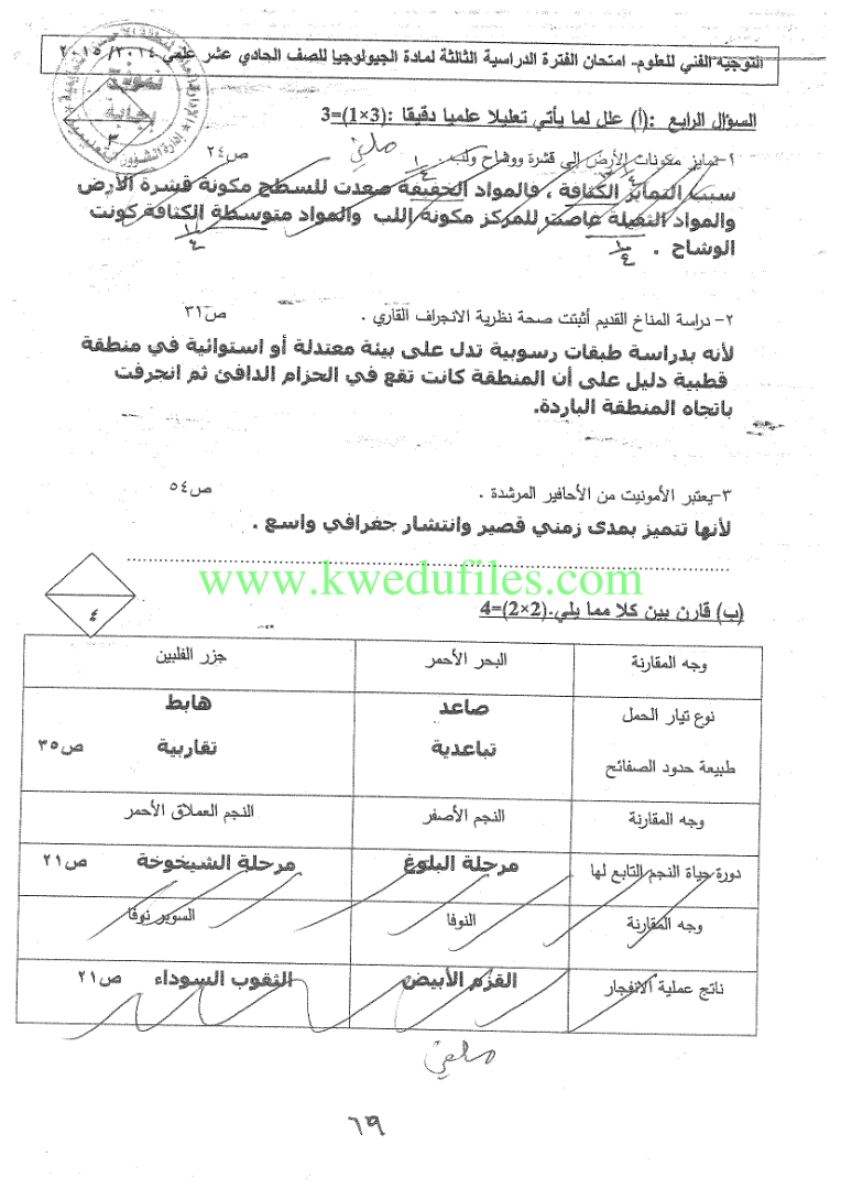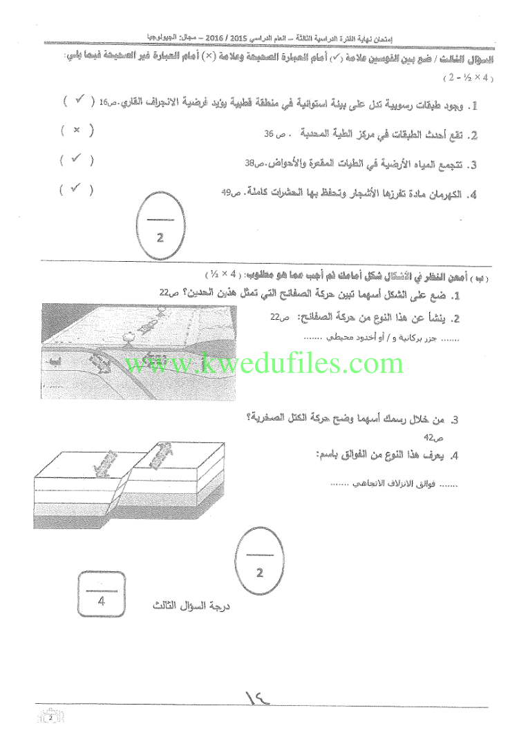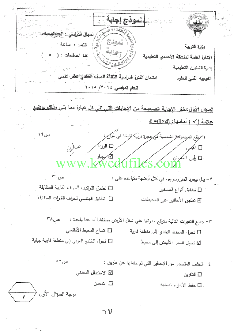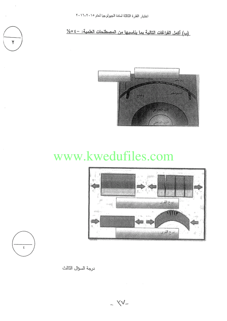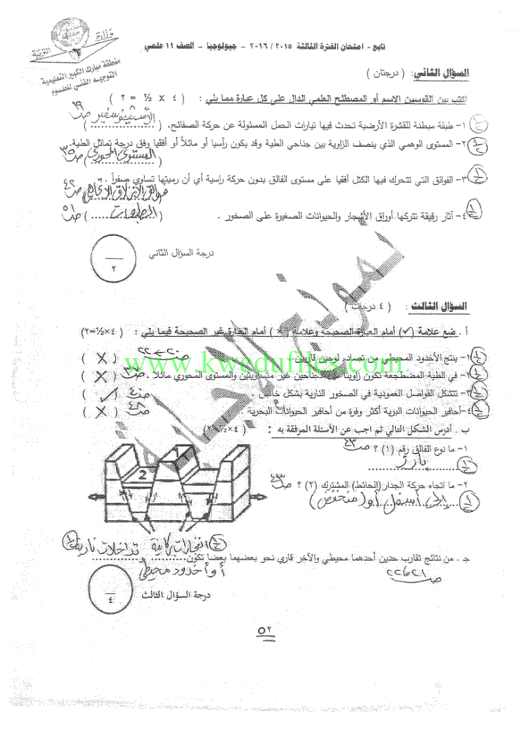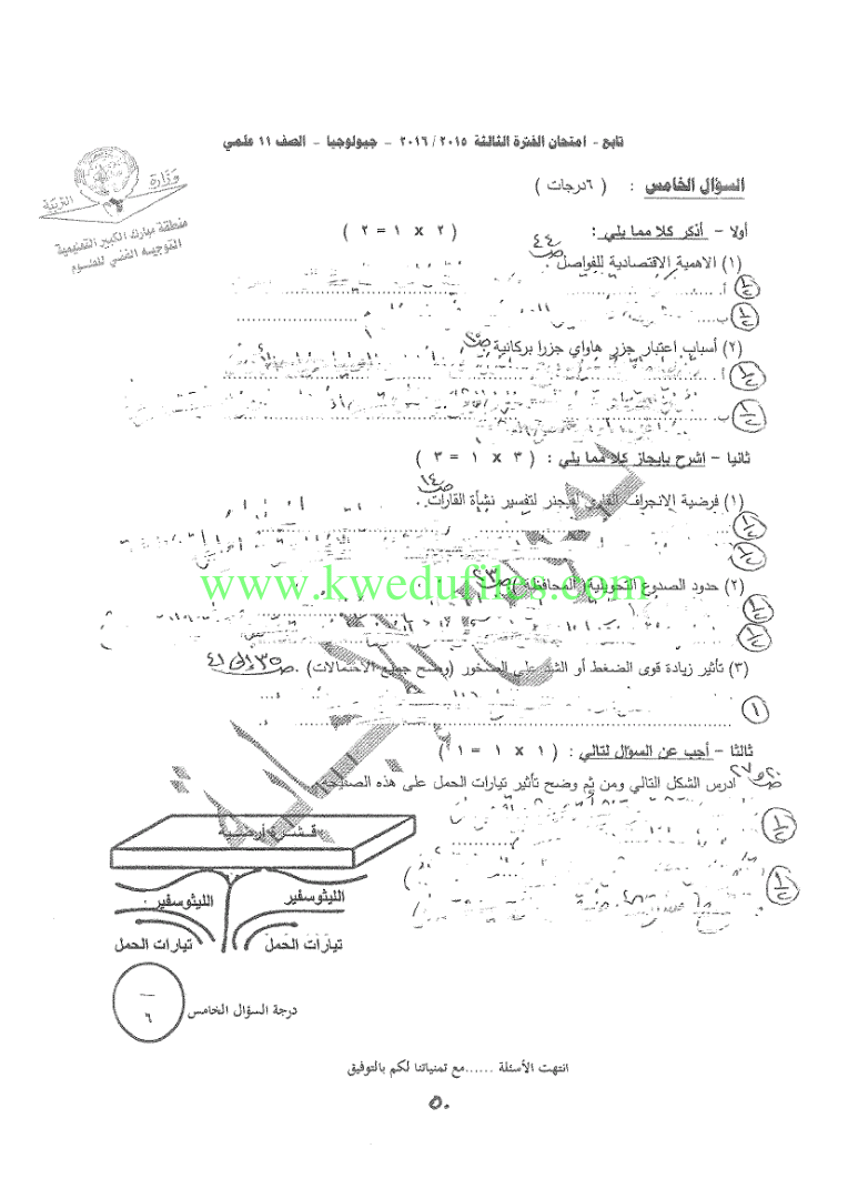 | نماذج اختبارات واحاباتهاالنموذجية في مادة الجيولوجيا - إعداد: ثانوية سلمان الفارسي | ||