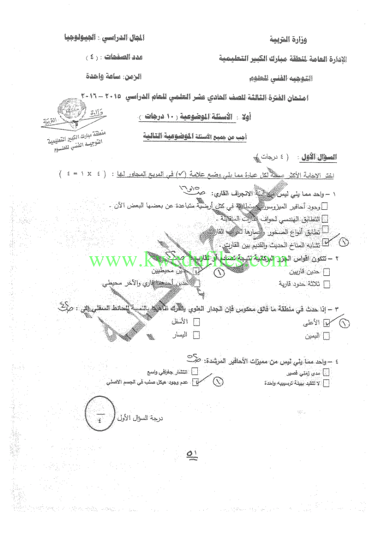 | أنت هنا: موقع المناهج ⇦ المناهج الكويتية ⇦ الصف الحادي عشر العلمي ⇦ جيولوجيا ⇦ الفصل الثاني ⇦ الامتحان النهائي |