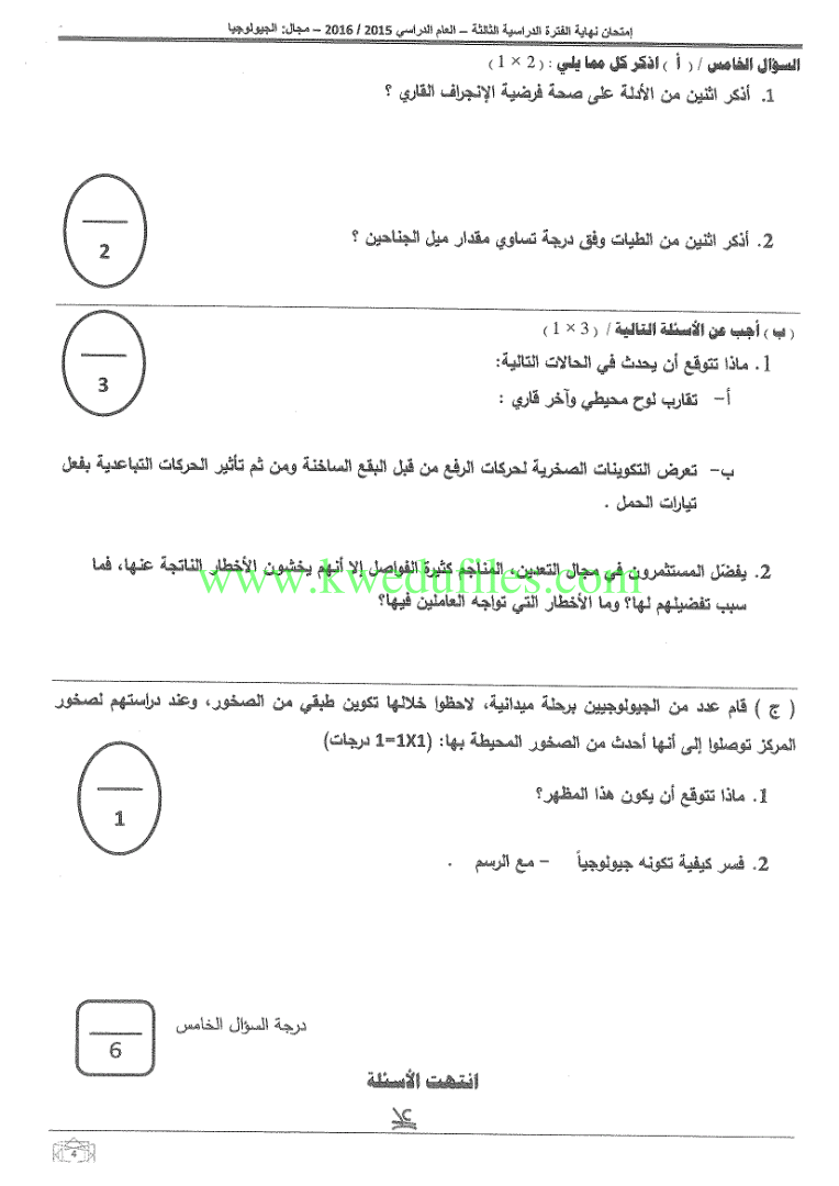 تم إيجاد الملف: نماذج اختبارات واحاباتهاالنموذجية في مادة الجيولوجيا