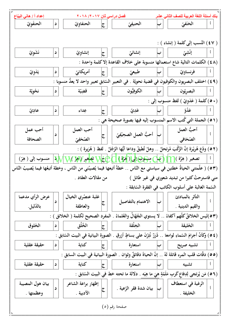 تم إيجاد الملف: بنك اسئلة في مادة اللغة العربية