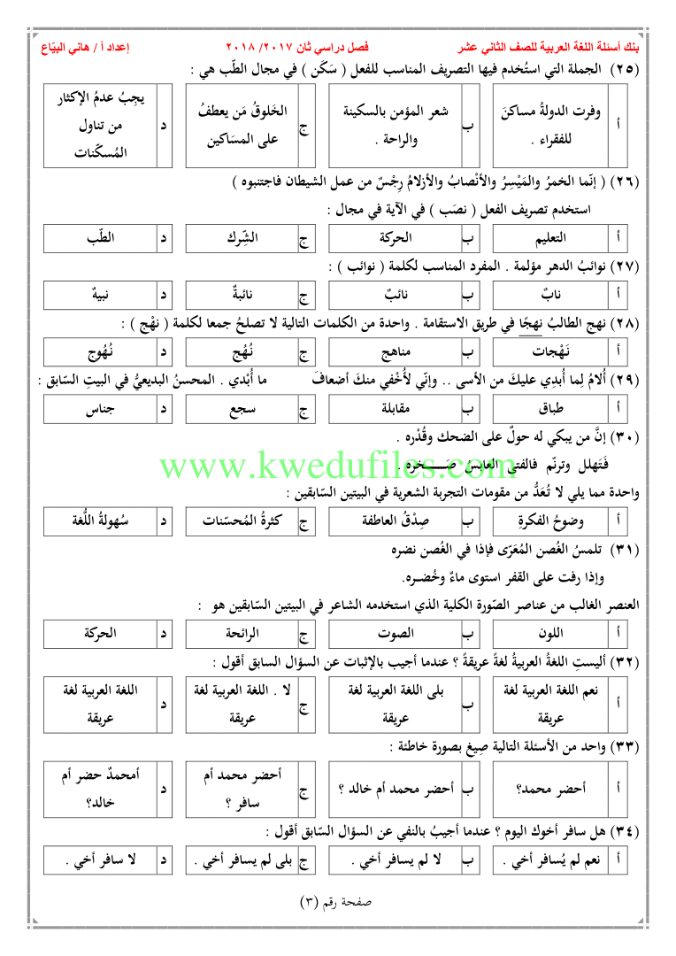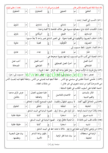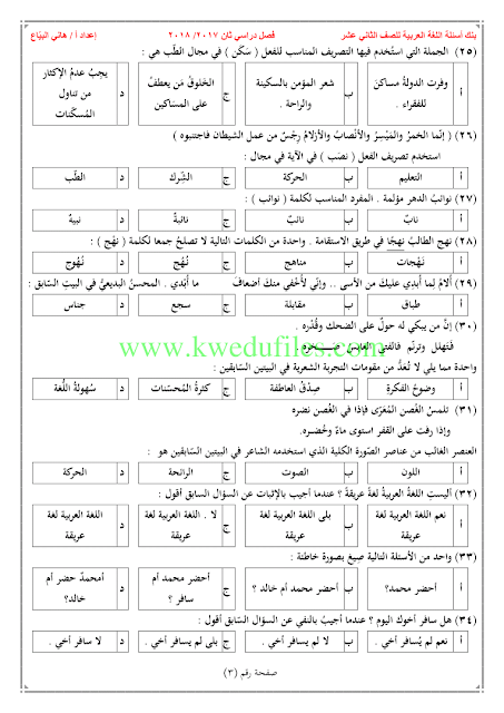 | بنك اسئلة في مادة اللغة العربية - إعداد: هاني البياع | ||