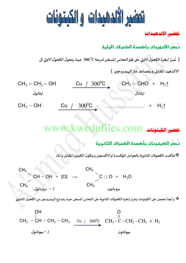 تم إيجاد الملف: الالدهيدات والكيتونات في مادة الكيمياء