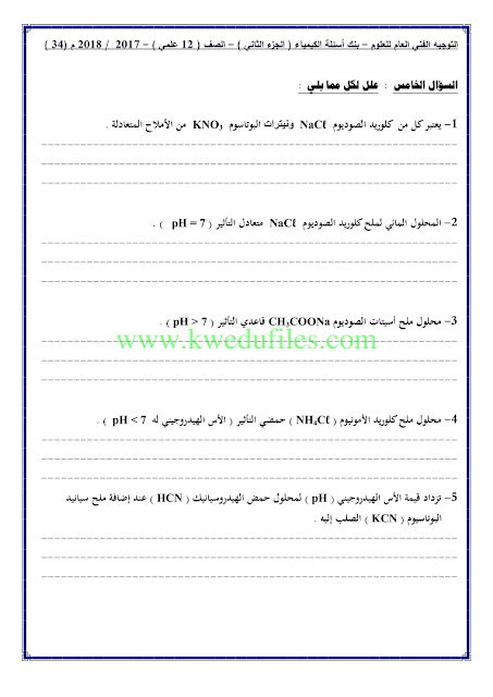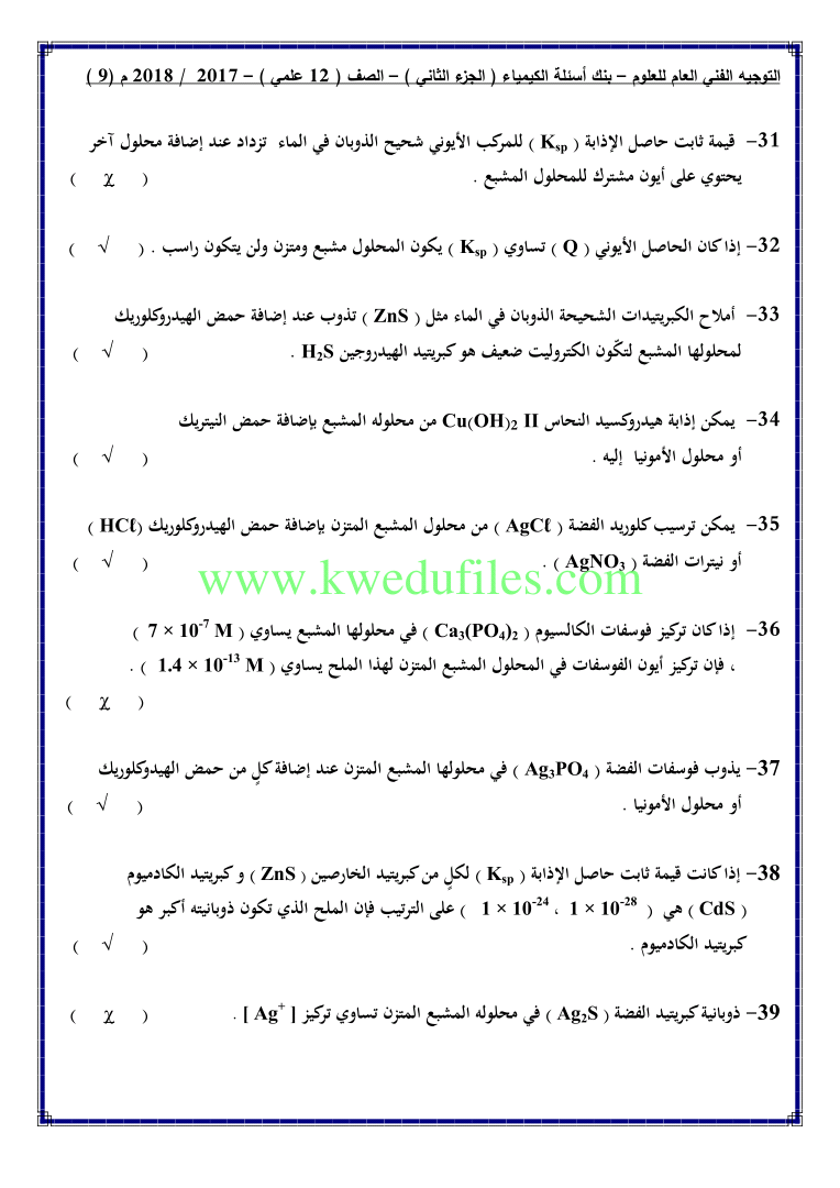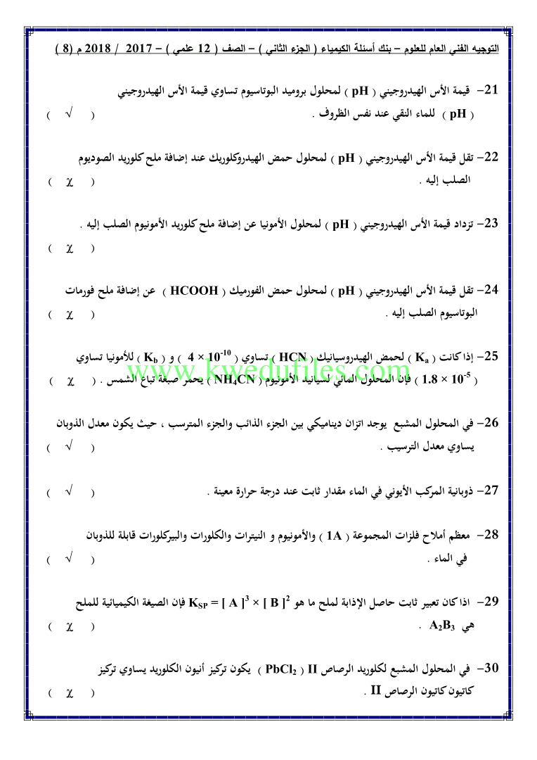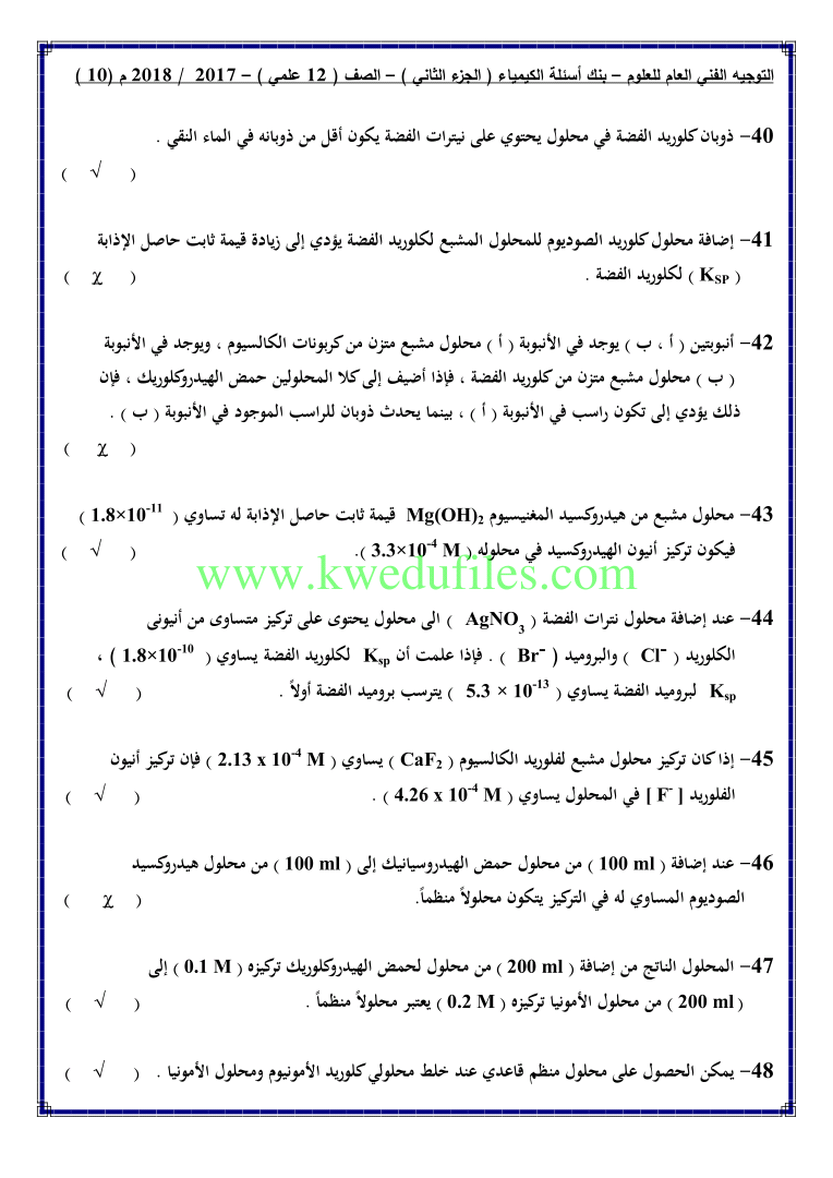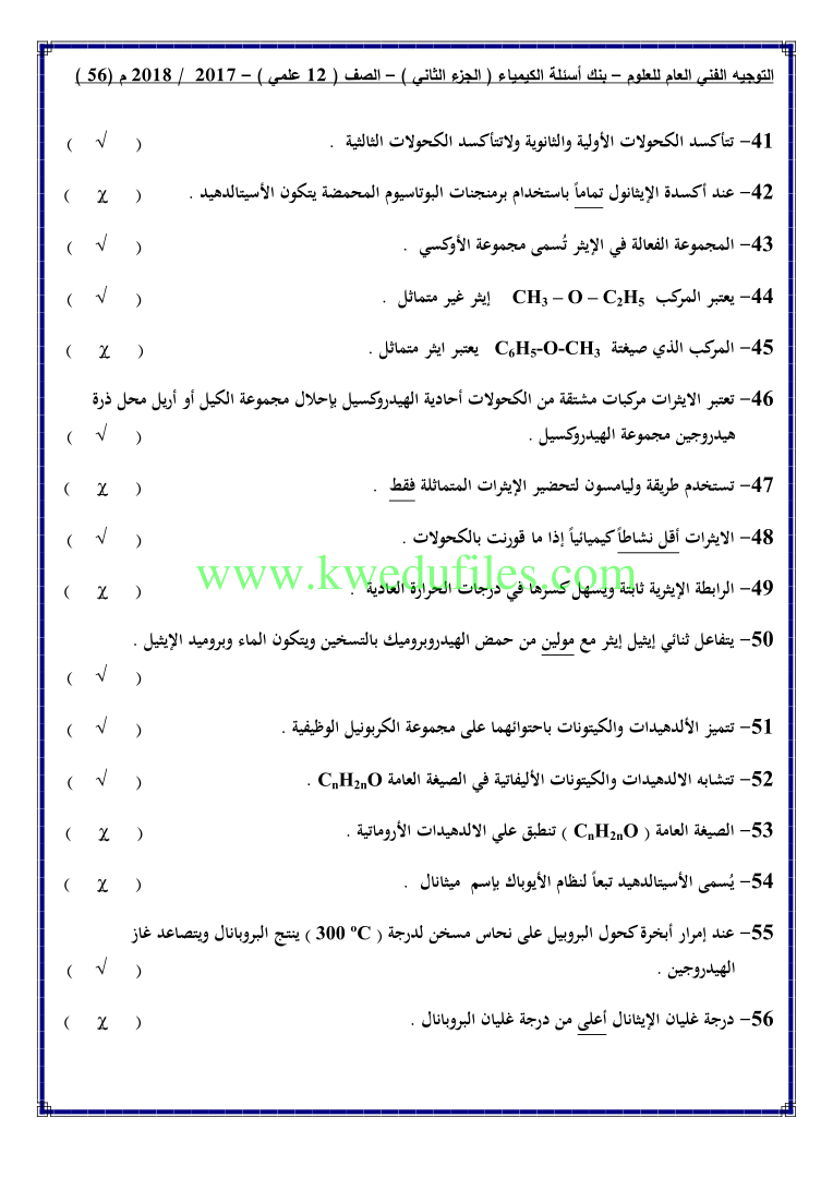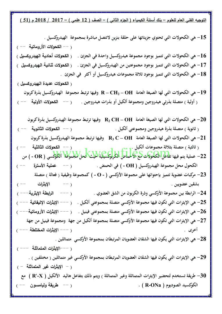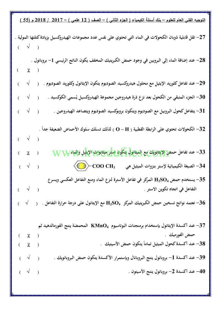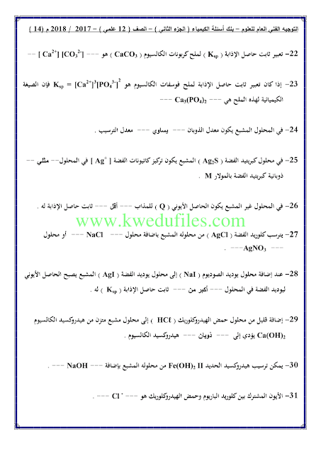 أحدث ملفات الصف الثاني عشر العلمي, كيمياء, الفصل الثاني