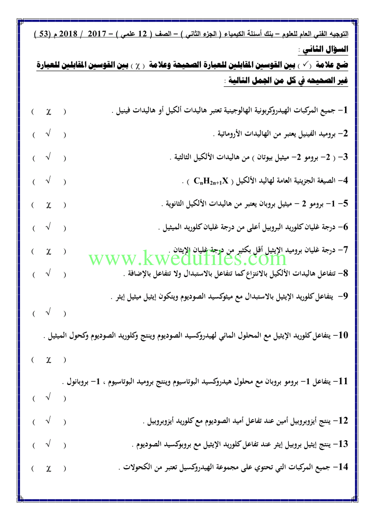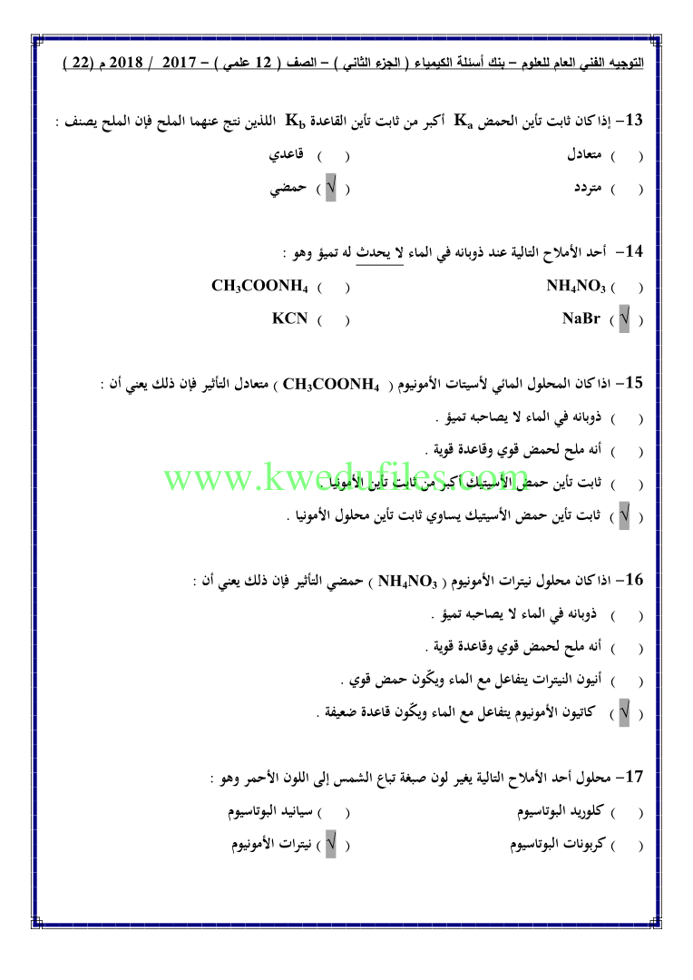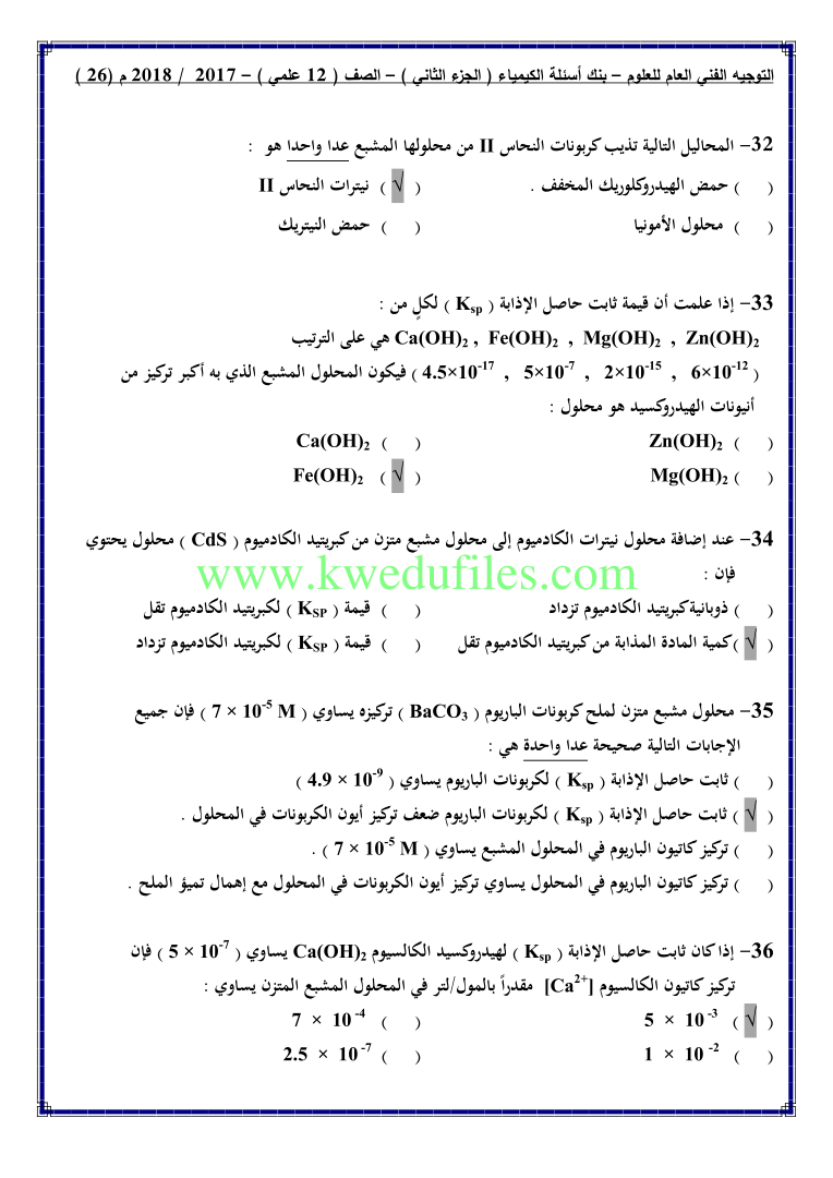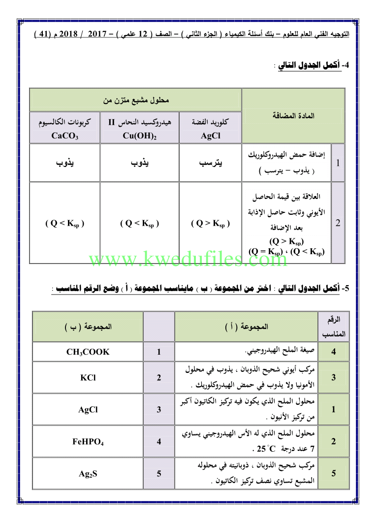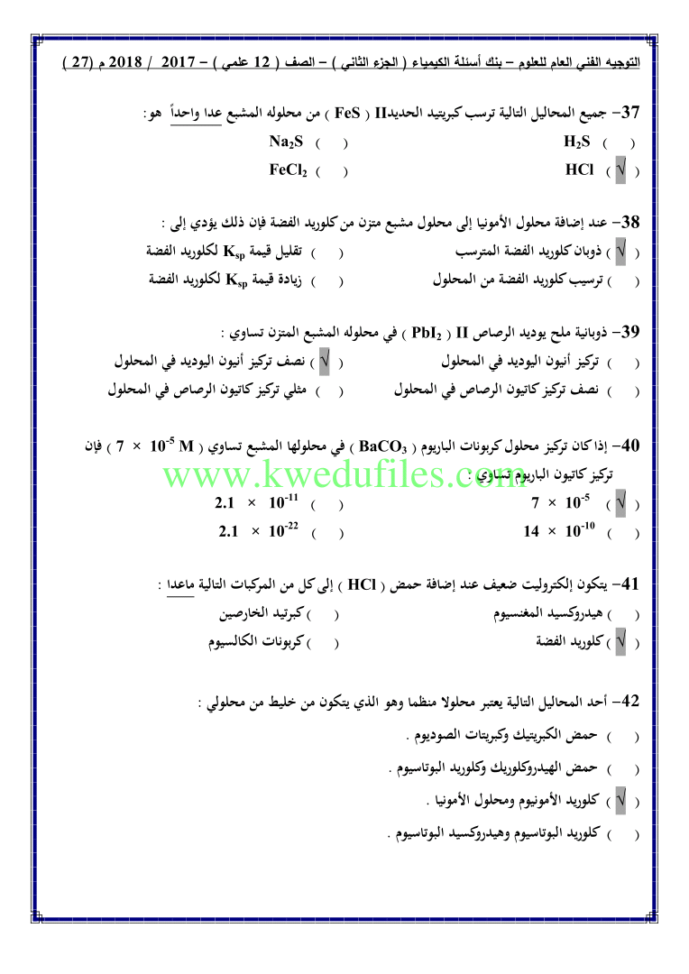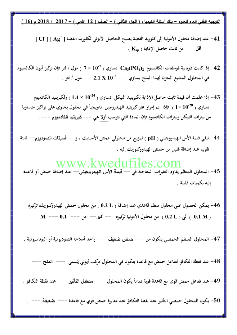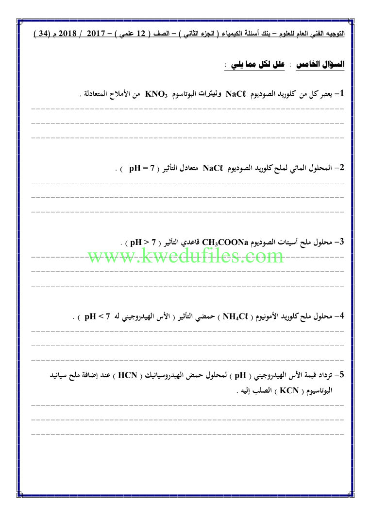 أحدث ملفات الصف الثاني عشر العلمي, كيمياء, الفصل الثاني