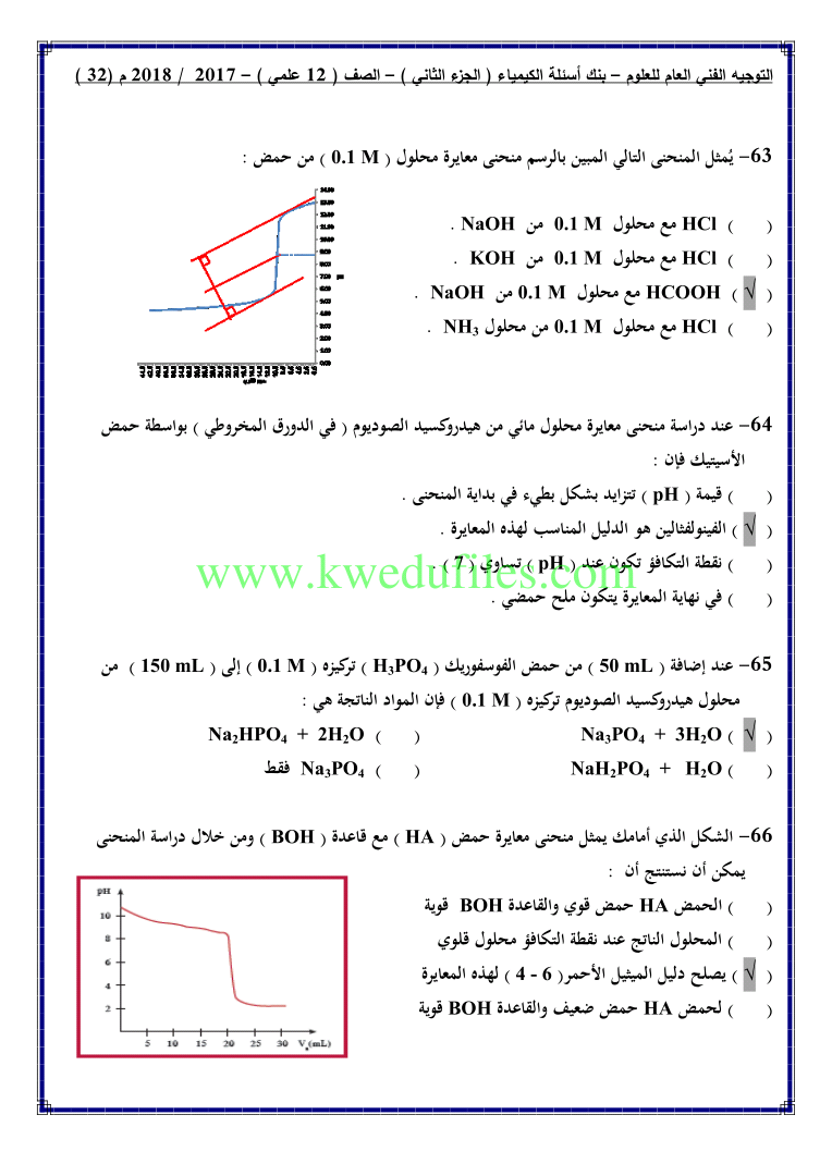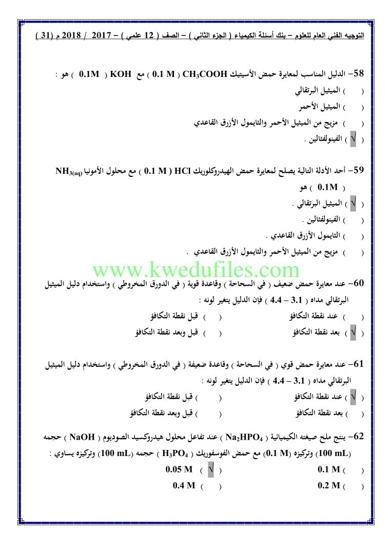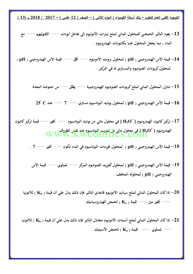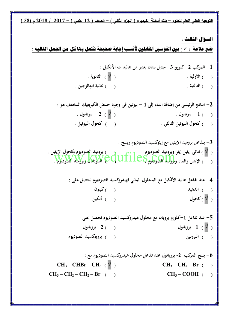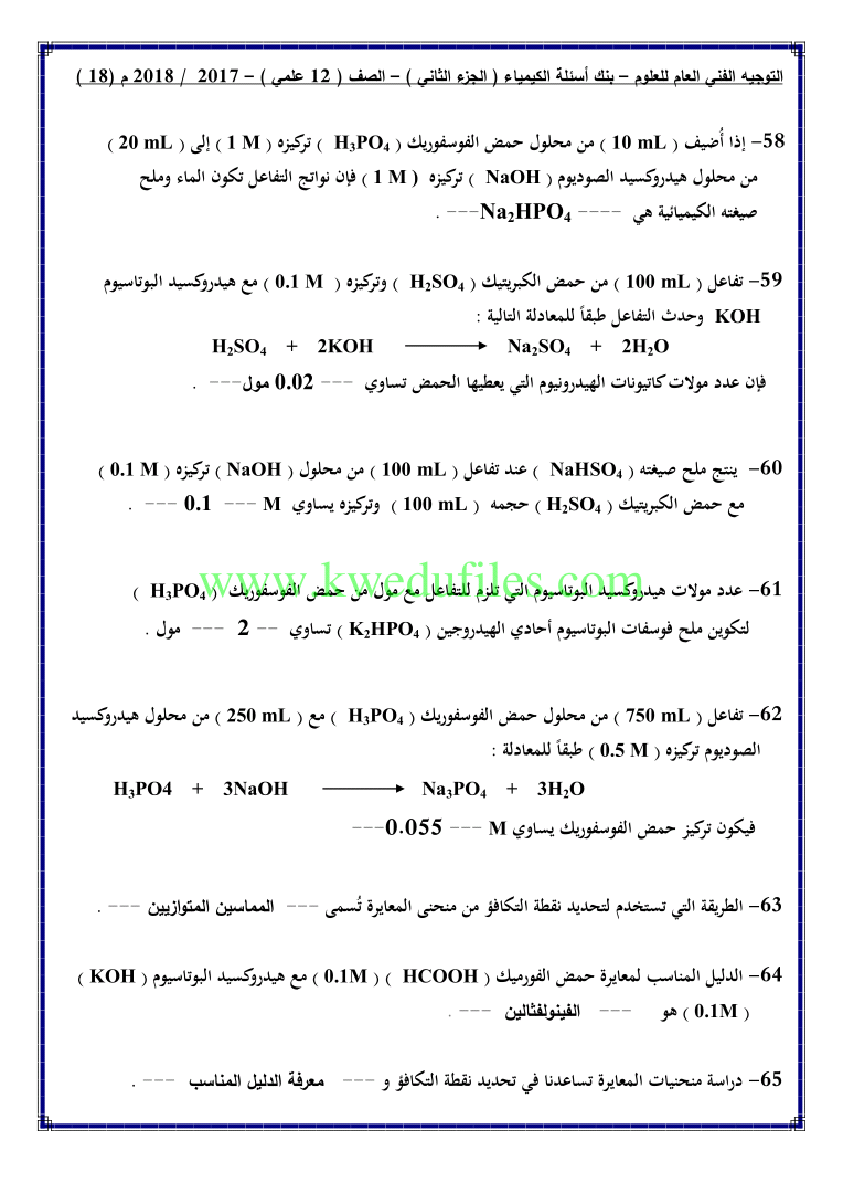12. كيمياء, الفصل الثاني, 2024-2025, توقعات نهائية للاختبار القصير الثاني (أسئلة)