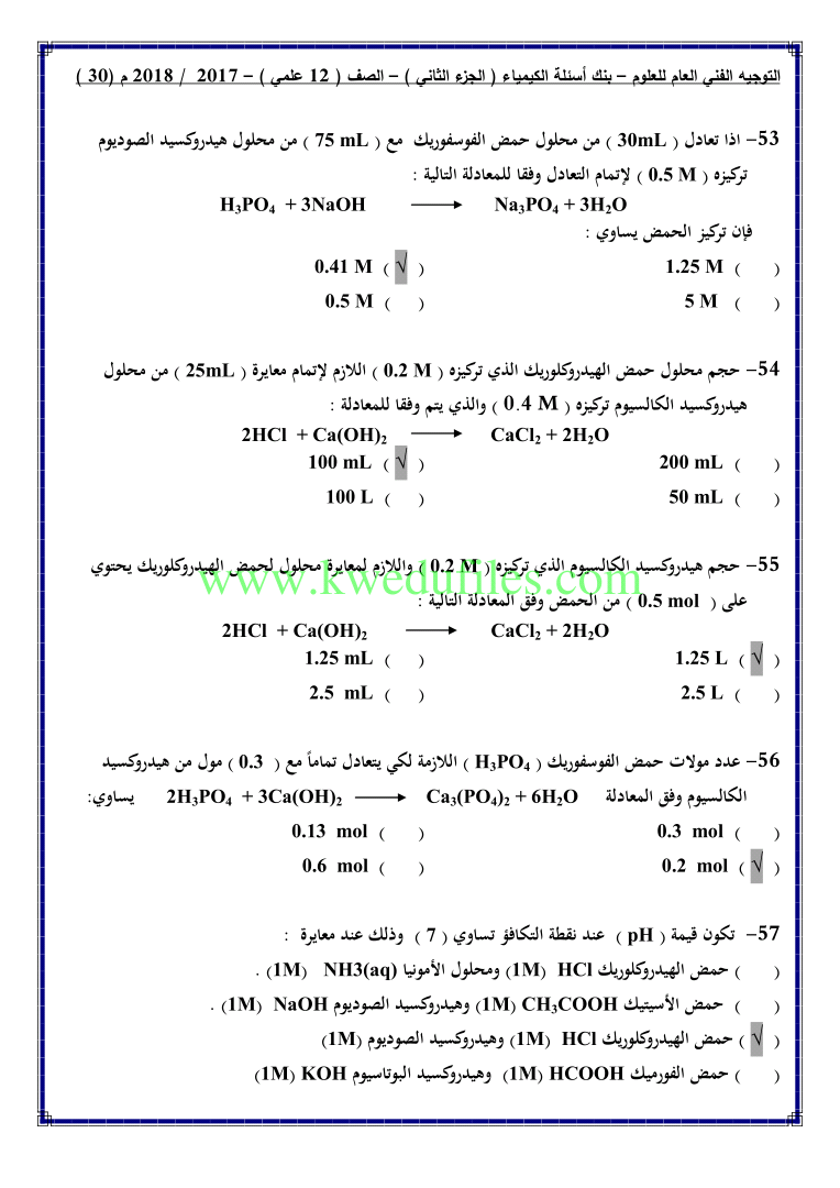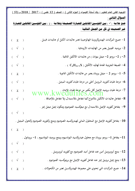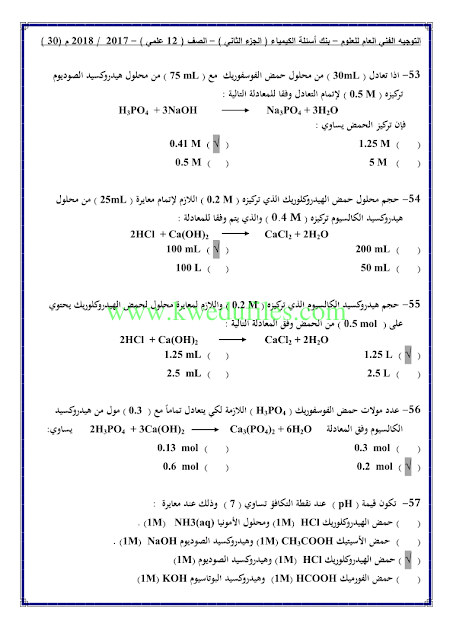 أنت هنا: موقع المناهجالمناهج الكويتية الصف الثاني عشر العلمي كيمياء الفصل الثاني حلول