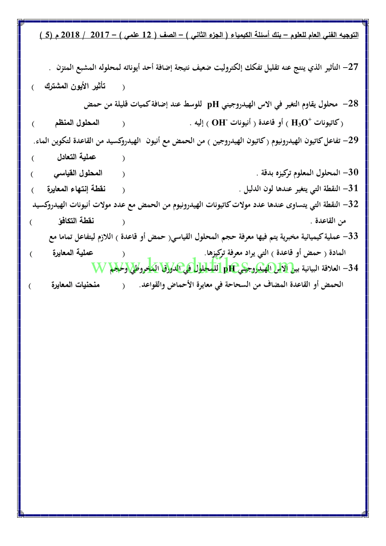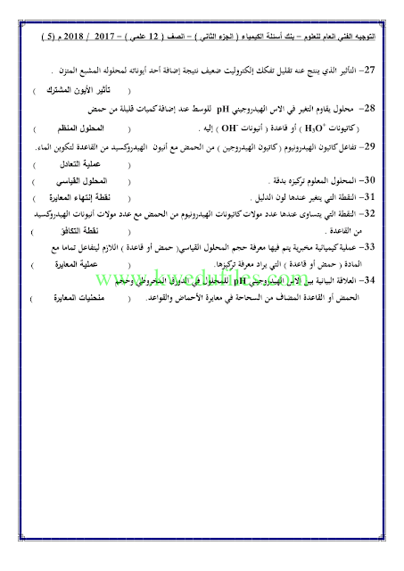5. كيمياء, الفصل الأول, 2025-2026, بنك الأسئلة والأجوبة الرسمي
