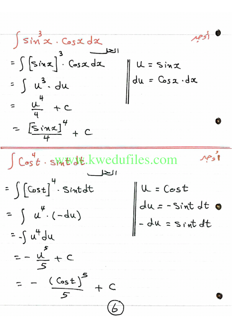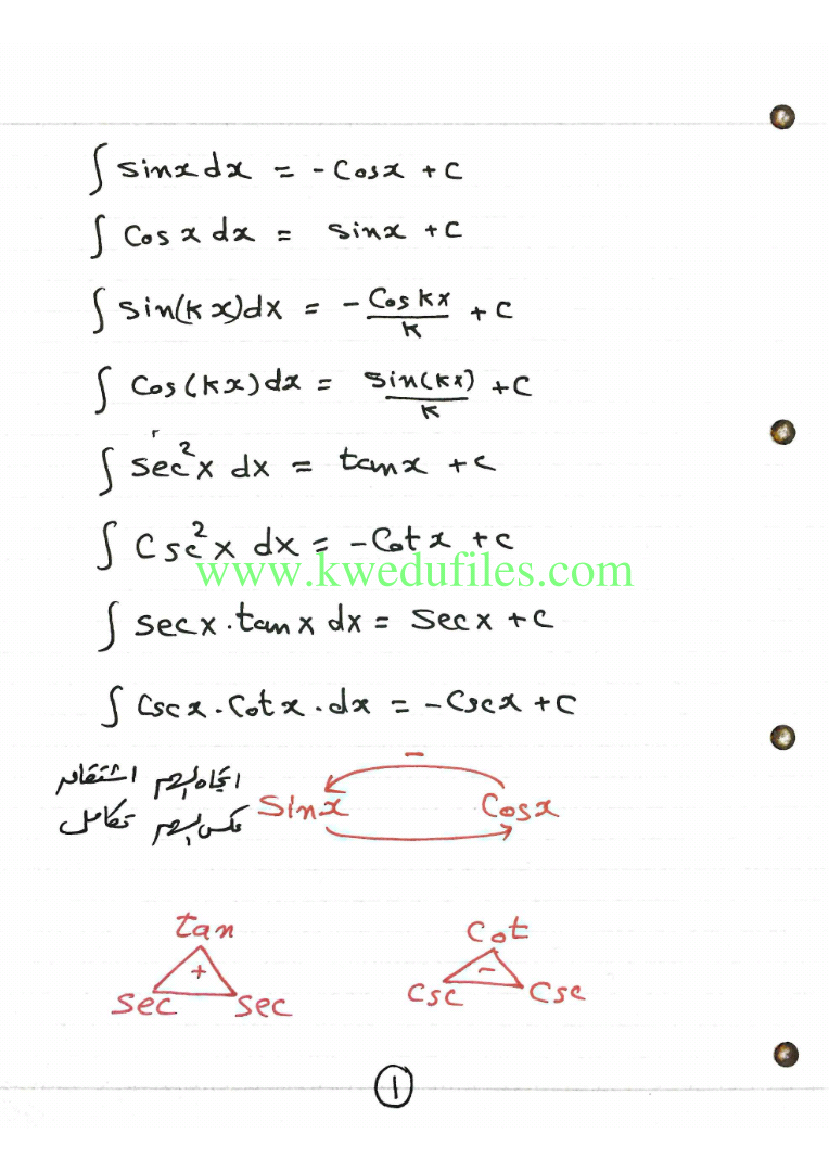 1. تكامل الدوال المثلثية في مادة الكيمياء