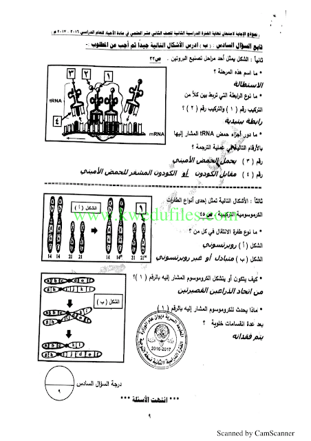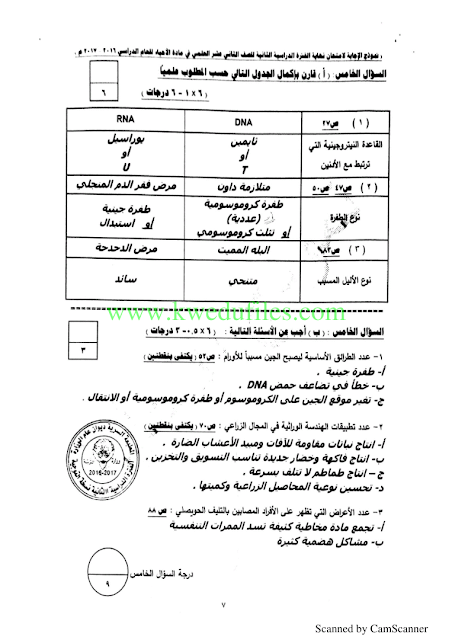 امتحان نهاية الفترة الدراسية الثانية في مادة الاحياء - إعداد: التوجيه الفني العام للعلوم
