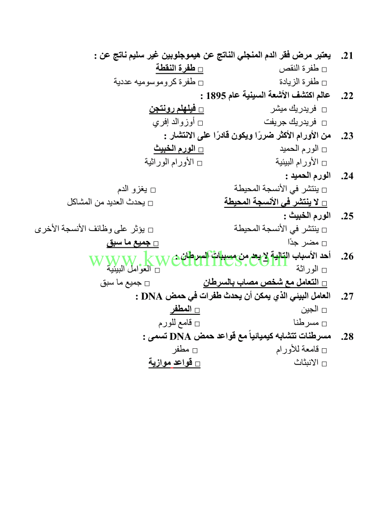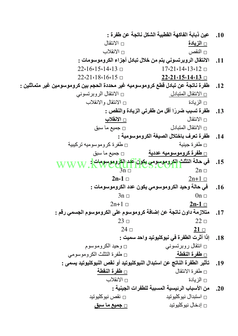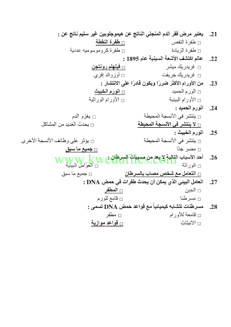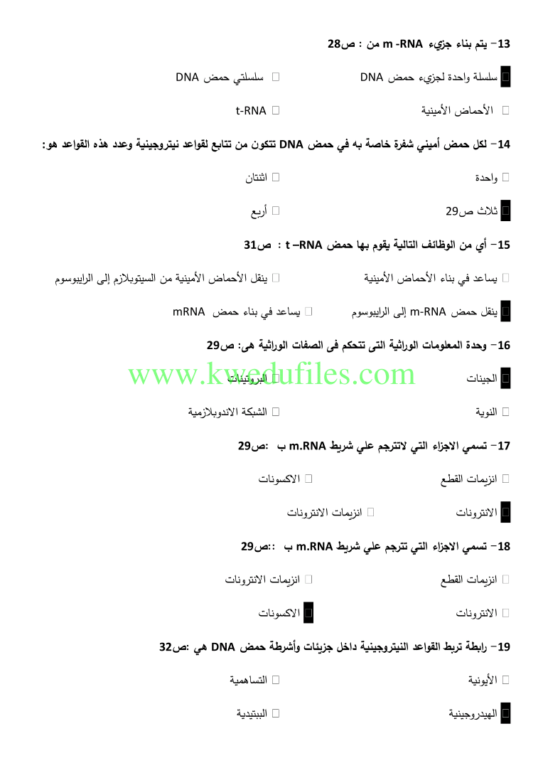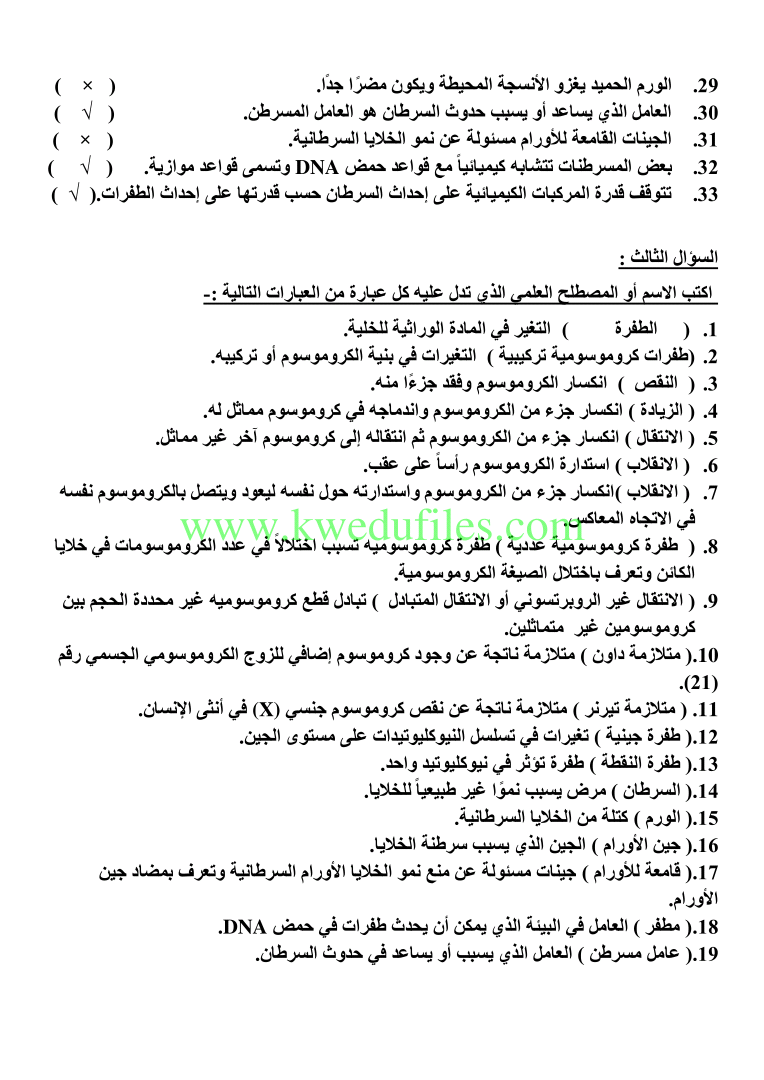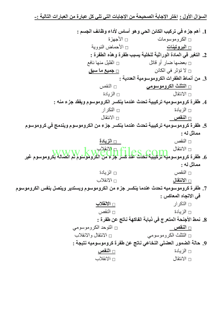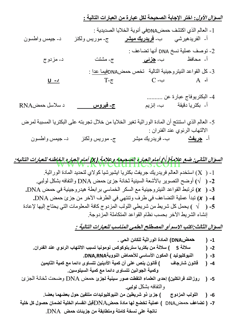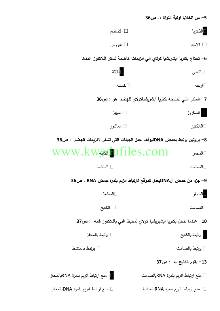تم إيجاد الملف: اجابة بنك اسئلة في مادة الاحياء