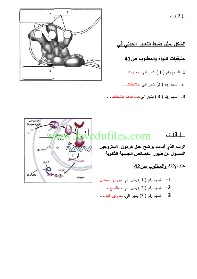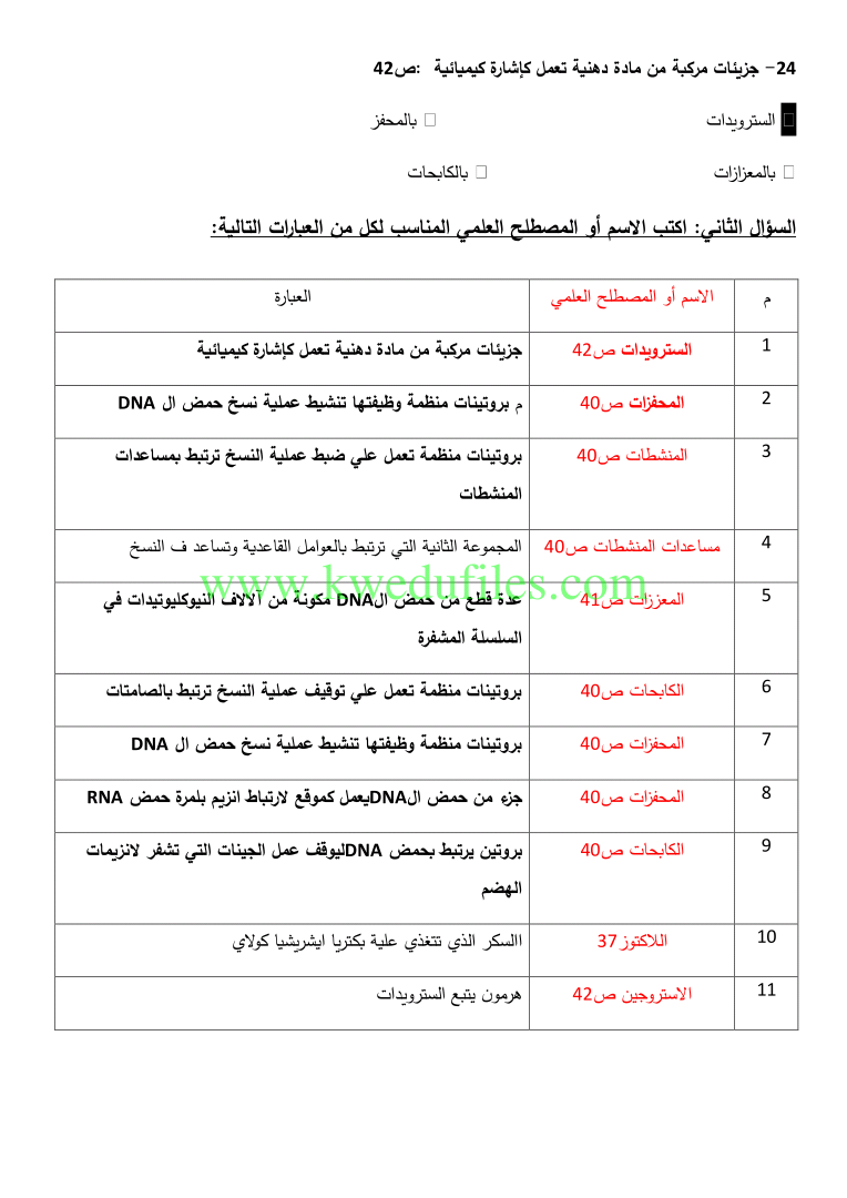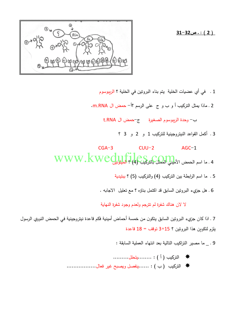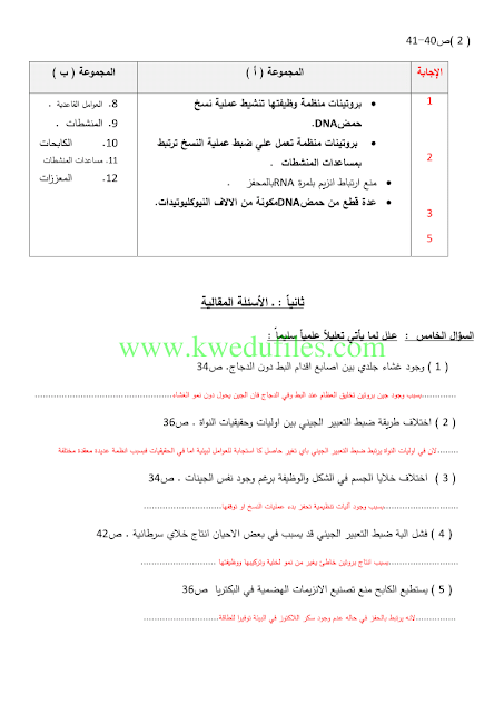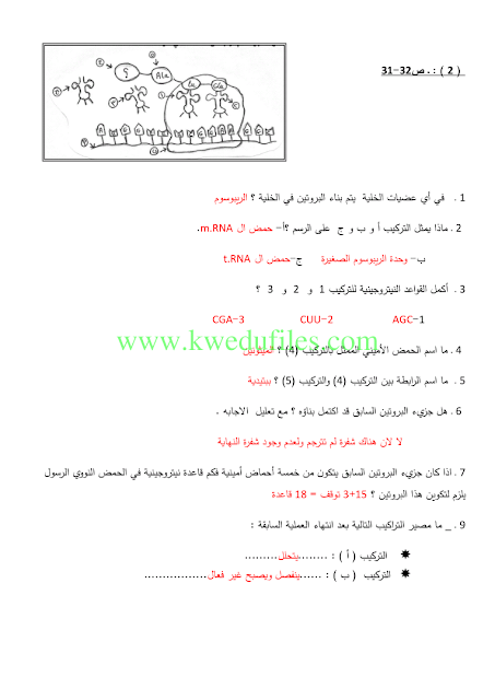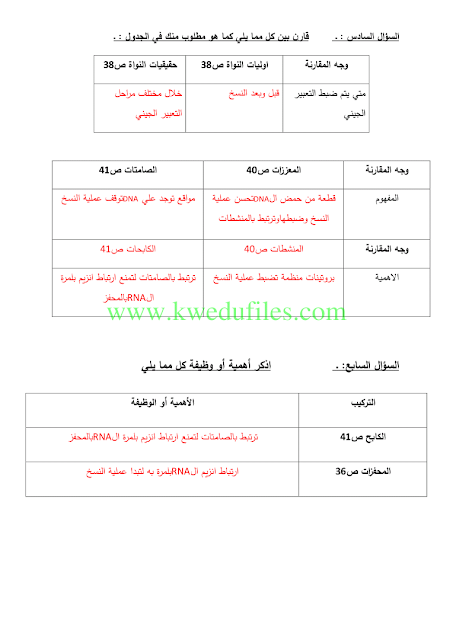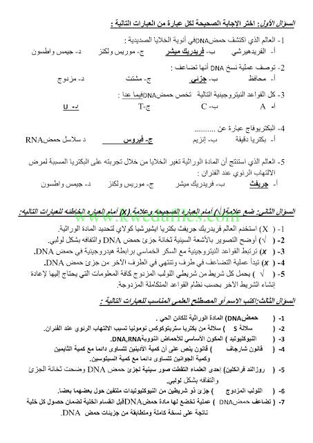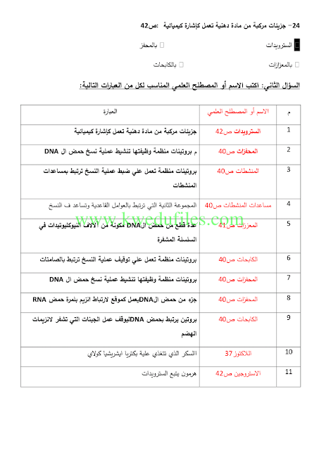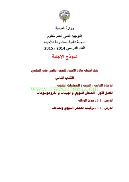 اجابة بنك اسئلة في مادة الاحياء - إعداد: التوجيه الفني العام للعلوم | ||