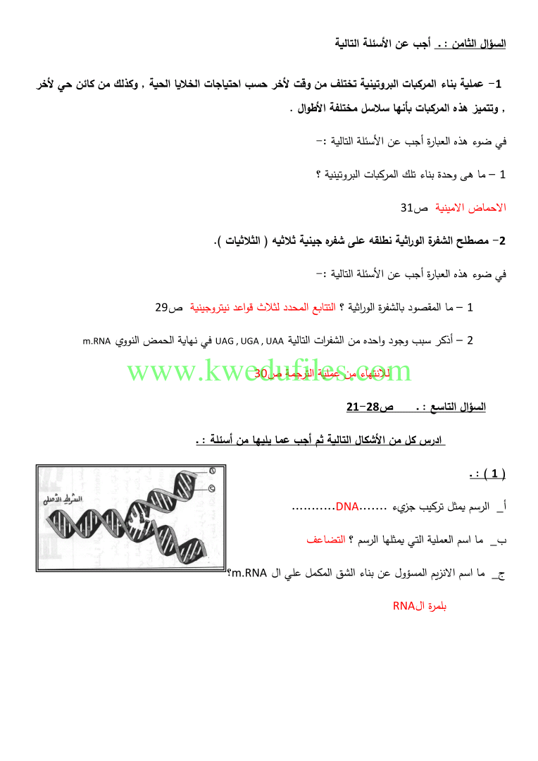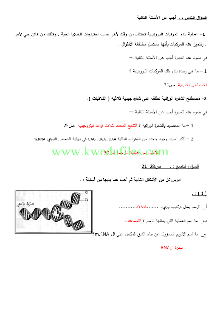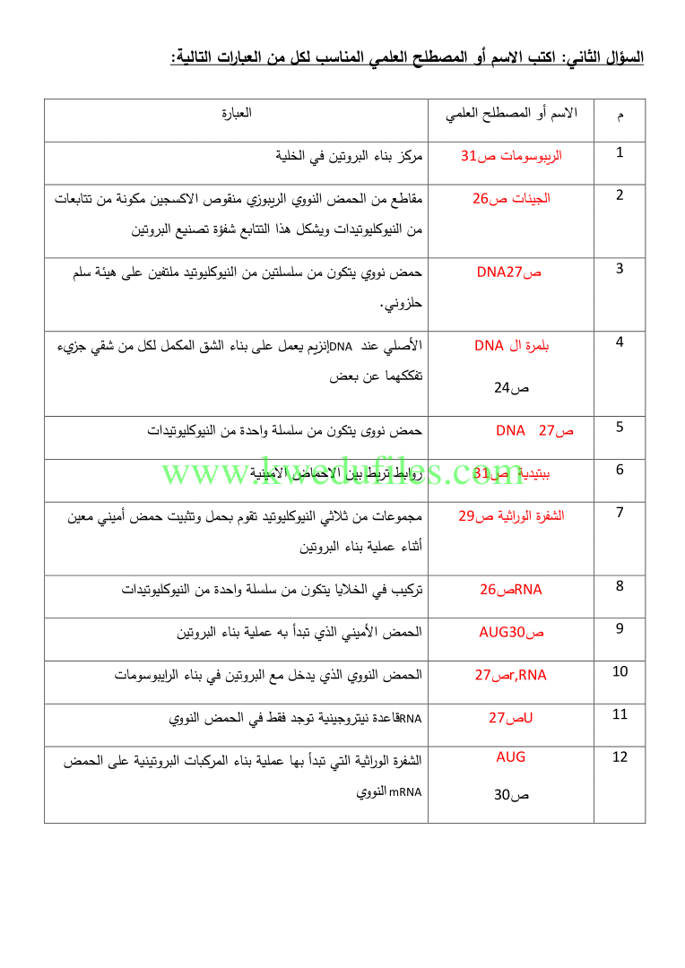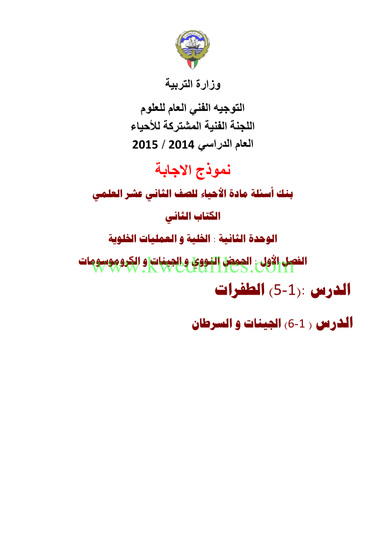 | اجابة بنك اسئلة في مادة الاحياء - إعداد: التوجيه الفني العام للعلوم | ||