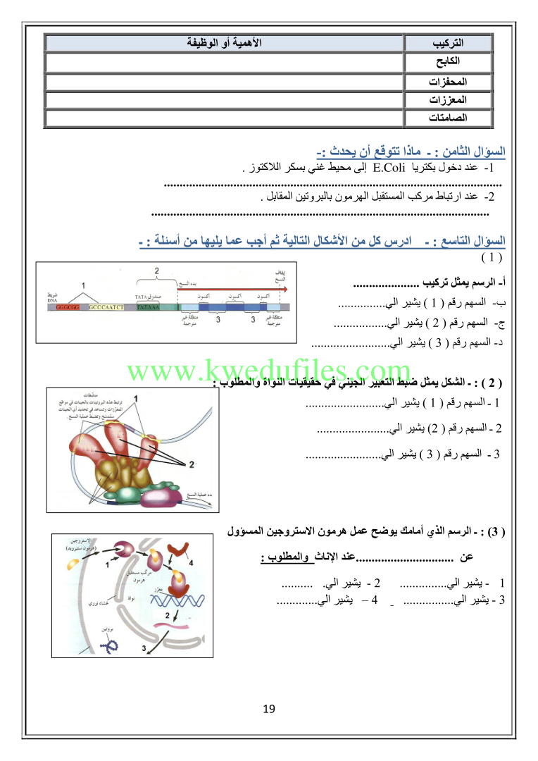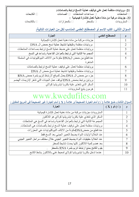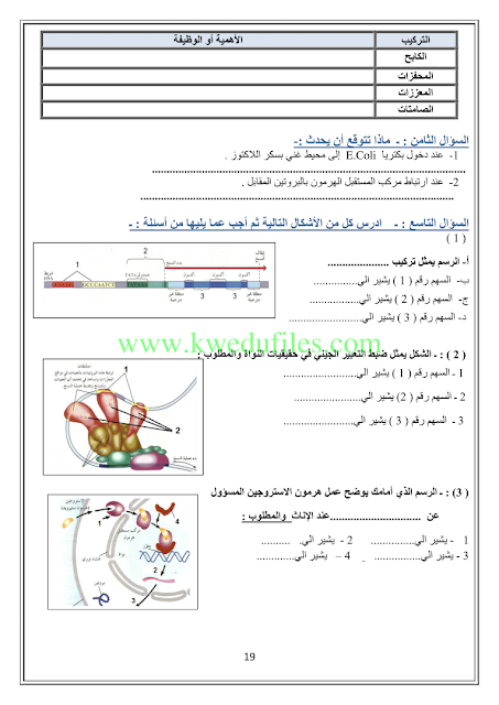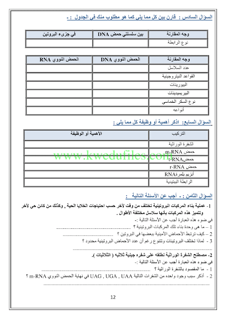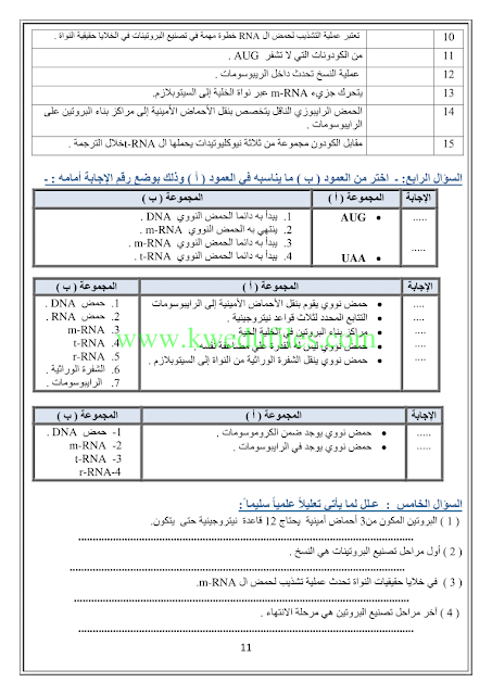 بنك اسئلة في مادة الاحياء - إعداد: التوجيه الفني العام للعلوم
