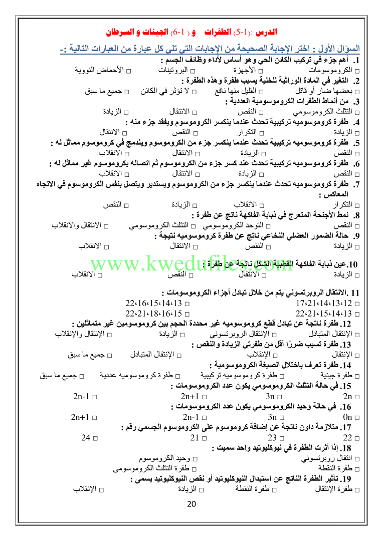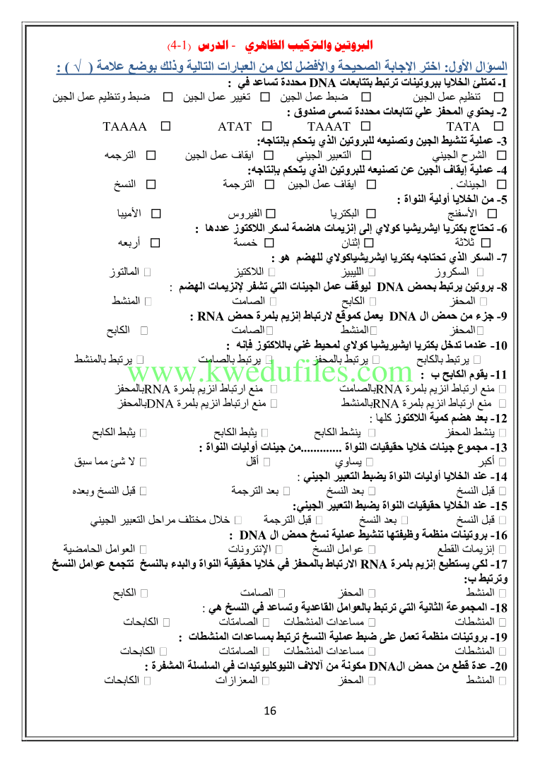 تم إيجاد الملف: بنك اسئلة في مادة الاحياء