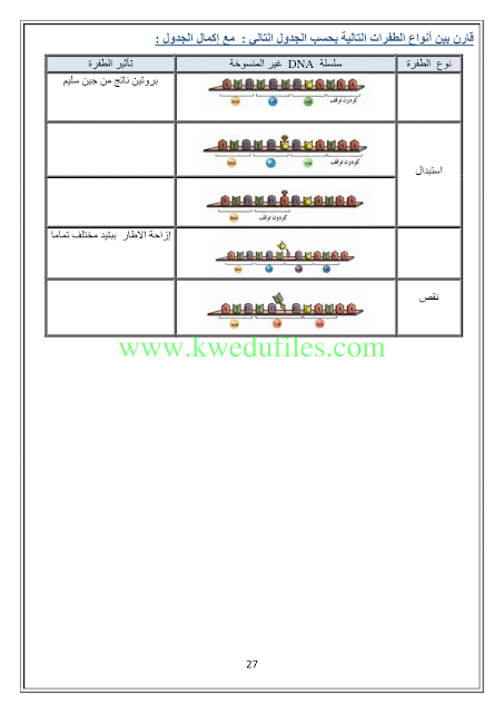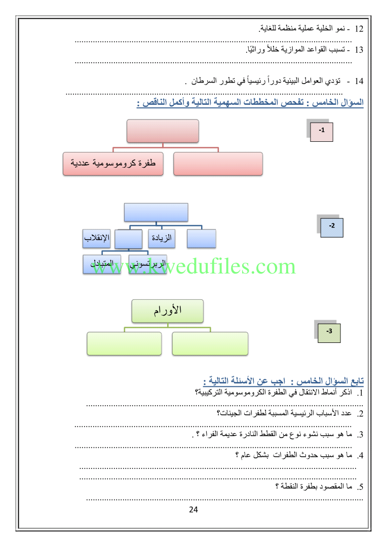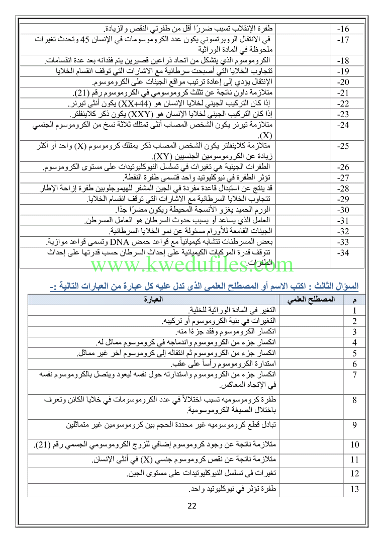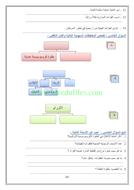 14. ملخص درس الطفرات والجينات والسرطان وكروموسومات الإنسان والوراثة والوراثة الجزيئية لدى الإنسان من سلسلة السهل الميسر