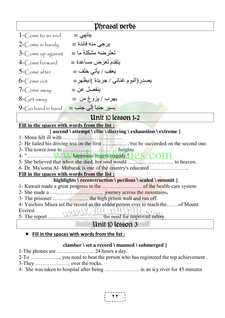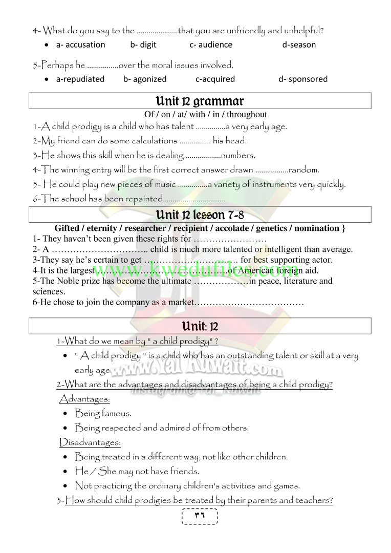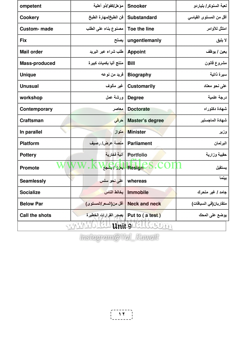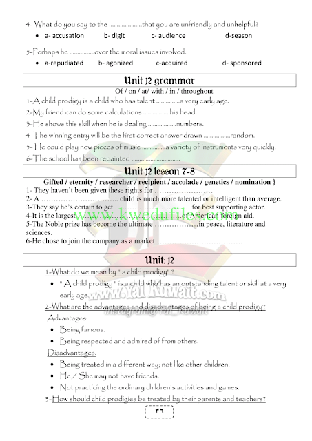 مراجعة نهائية في مادة اللغة الانكليزية, الصف الثاني عشر, لغة انجليزية, الفصل الثاني, 2017-2018 - المناهج الكويتية
