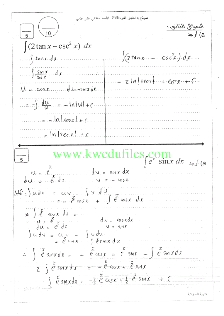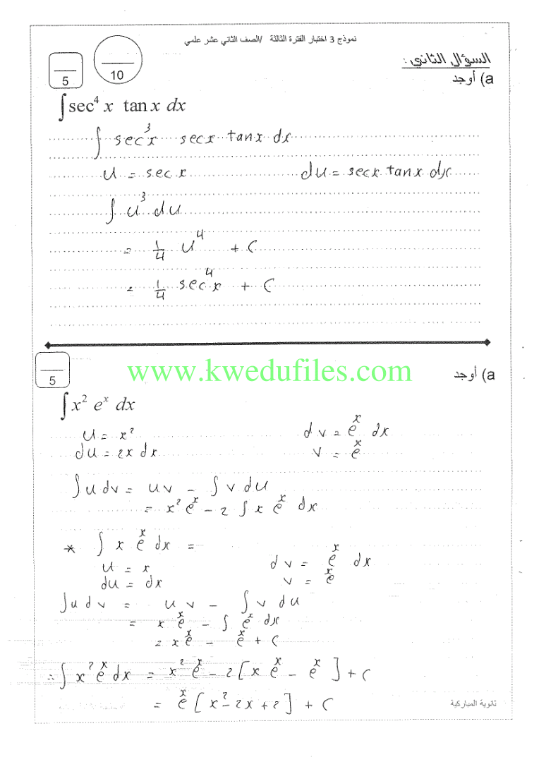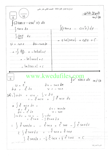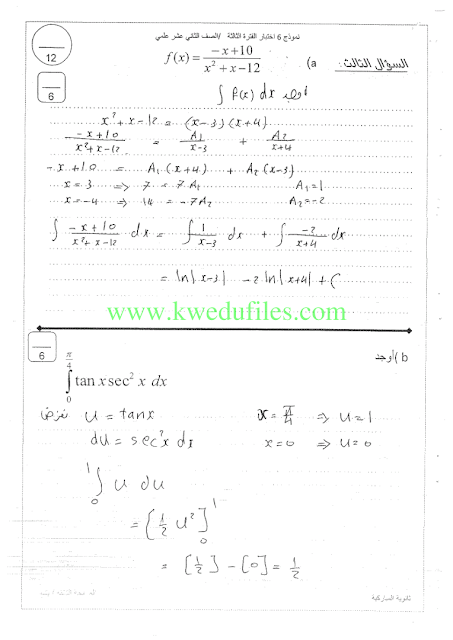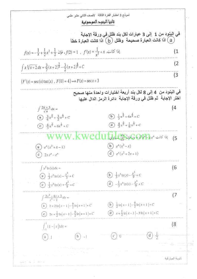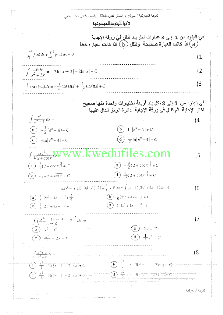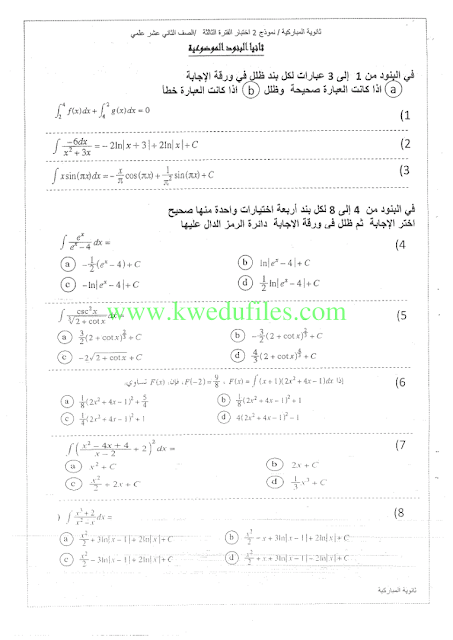 أنت هنا: موقع المناهجالمناهج الكويتية الصف الثاني عشر العلمي رياضيات الفصل الثاني الامتحان النهائي