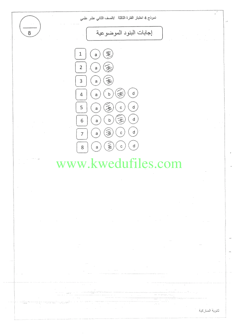 8. أسئلة اختبارات نهائية مجمعة لسنوات سابقة مع الإجابة